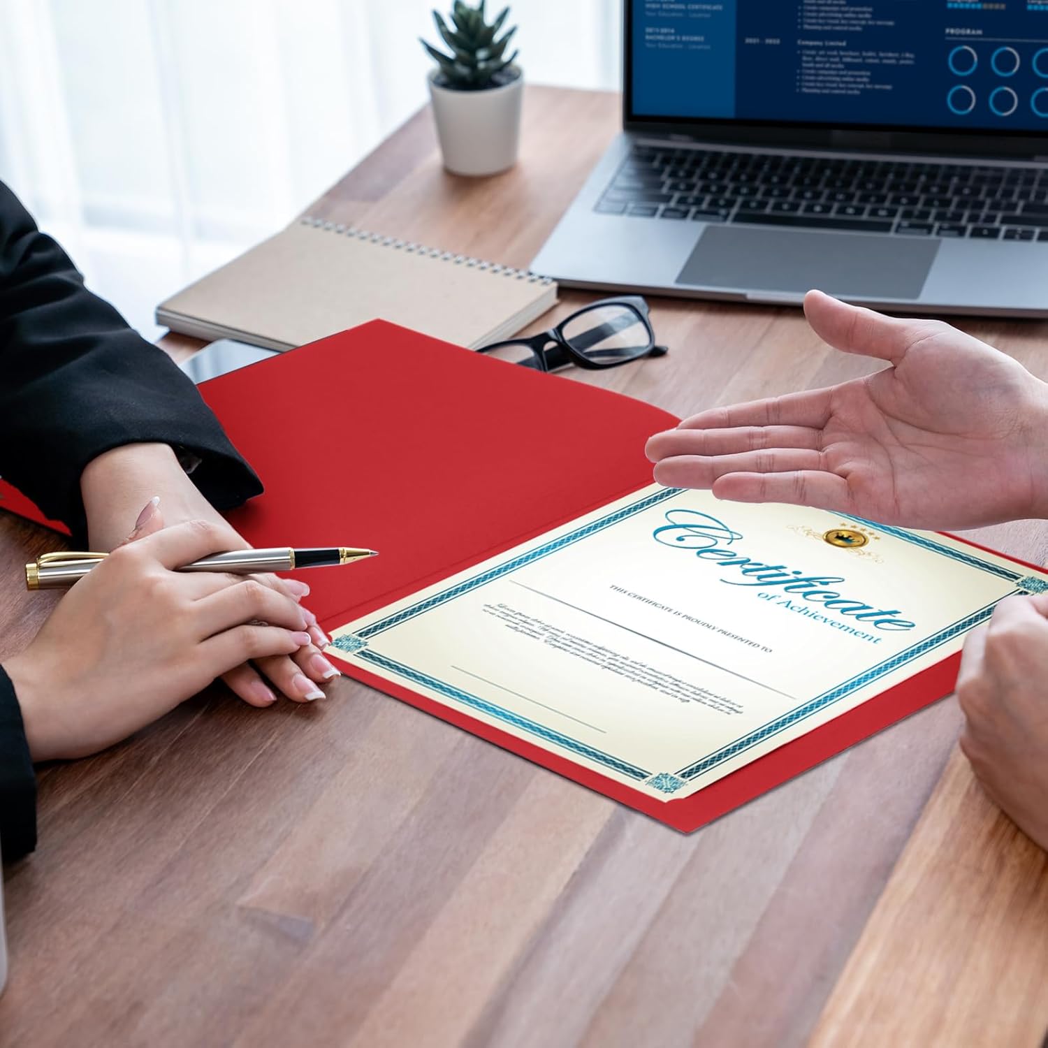 - Packing List: Our product is a set of 120 red certificate holders to keep your certificates, awards, anniversary diplomas, important letters, business documents, autographed photos or letter size cardstock in shape