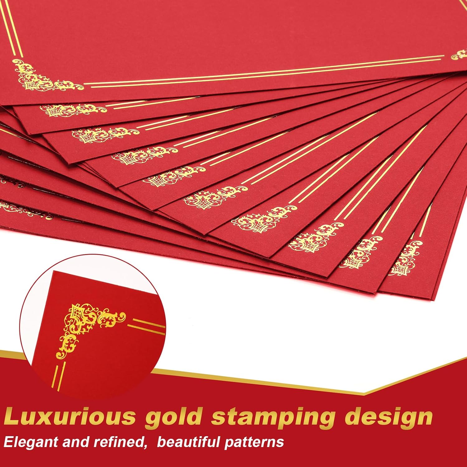 - Classic and Professional Look: Elegant gold foil on the front and solid red on the back for a formal and easily distinguishable front and back document cover; Ideal for presentations, award ceremonies, summer camps and other important occasions