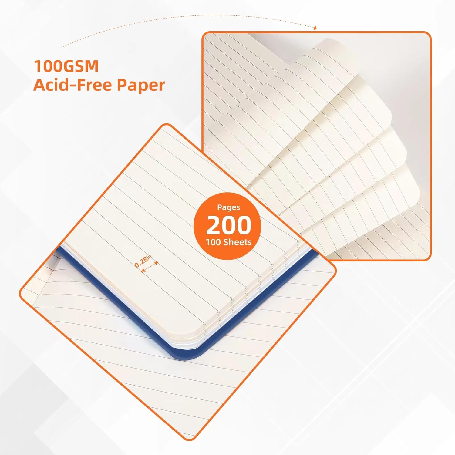 - HARDCOVER EXECUTIVE NOTEBOOK - Perfect size: 5.75" x 8.25", the notebooks college ruled features durable and water-resistant vegan leather cover, expandable pocket, ribbon bookmark and elastic closure band, offers durability and functionality.