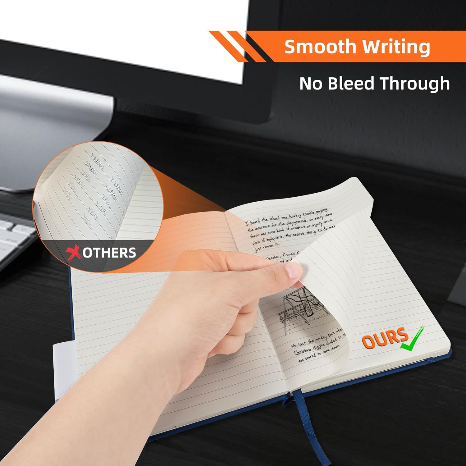 BOSSAND Lined Journal Notebook, A5 Journals for Writing, 200 Pages 100 GSM Thick Classic Ruled Paper, Hardcover, 8.25 inches x 5.75 inches, Navy Blue
