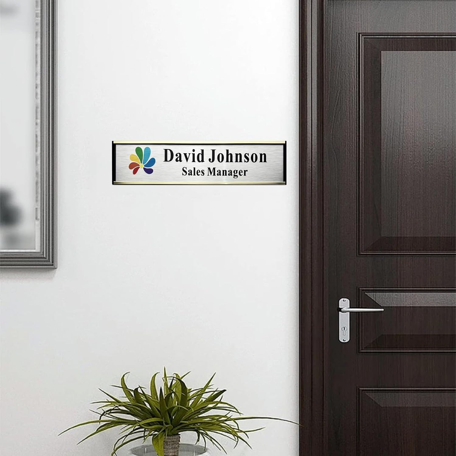 - 【Premium Quality Material】This 2 x 10 inch personalized office name plate and holder are crafted from high-quality aluminum, ensuring superior durability and a professional appearance. The name plate features water-proof inserts and is designed to be weather-proof, making it suitable for both indoor and outdoor use. It can easily slide into the sturdy aluminum holder for secure placement.