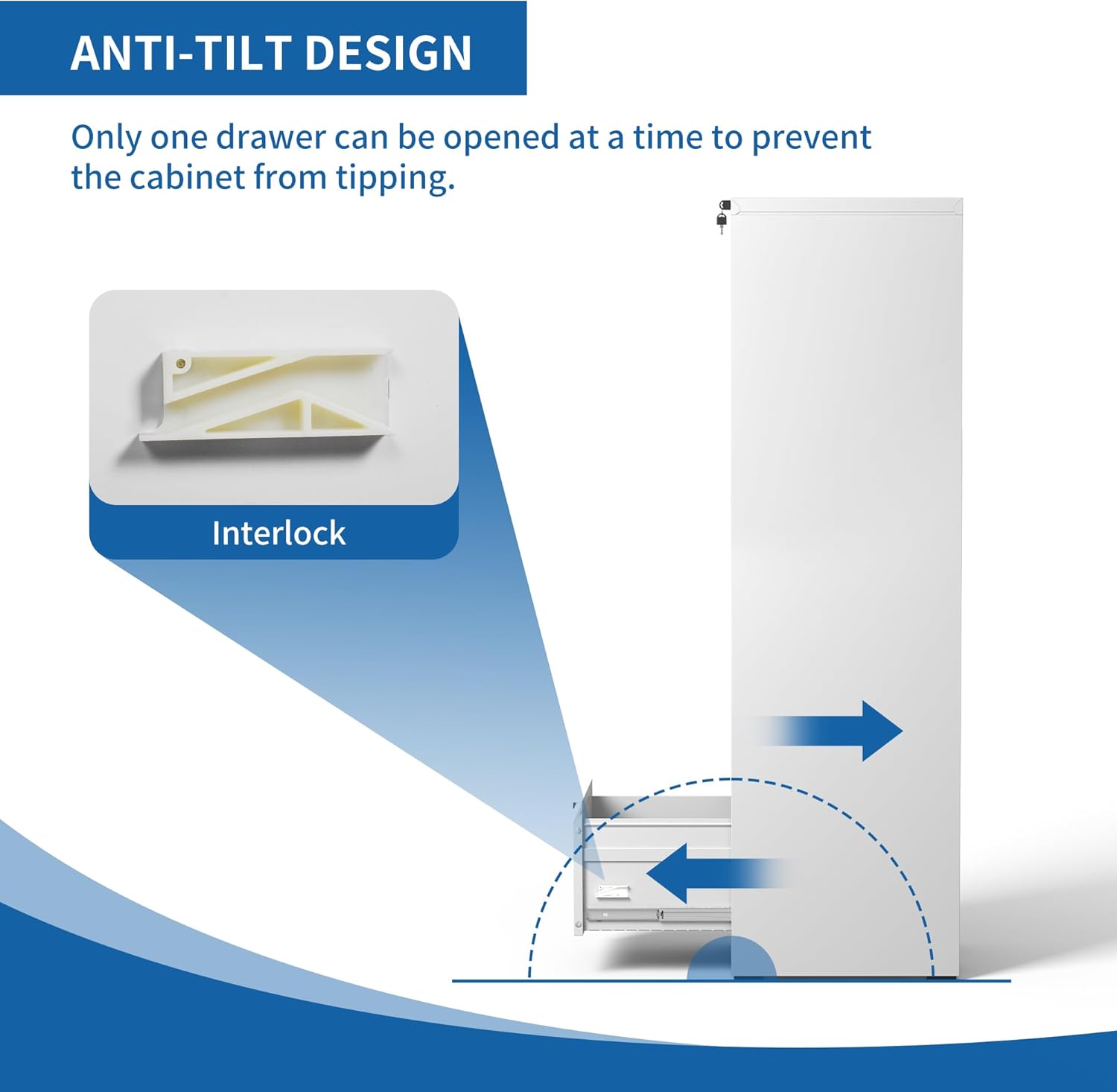 - ăAnti-tilt DesignăThis 5 drawer metal file cabinet designed with full extension and steel ball-bearing suspension, all drawers of the black vertical 5 drawer file cabinet can be opened and closed quietly and easily. The anti-tilt system ensures that only one drawer can be open at a time, preventing the metal file cabinet from tipping over. You can have peace of mind knowing that your important documents and items are safe and secure.