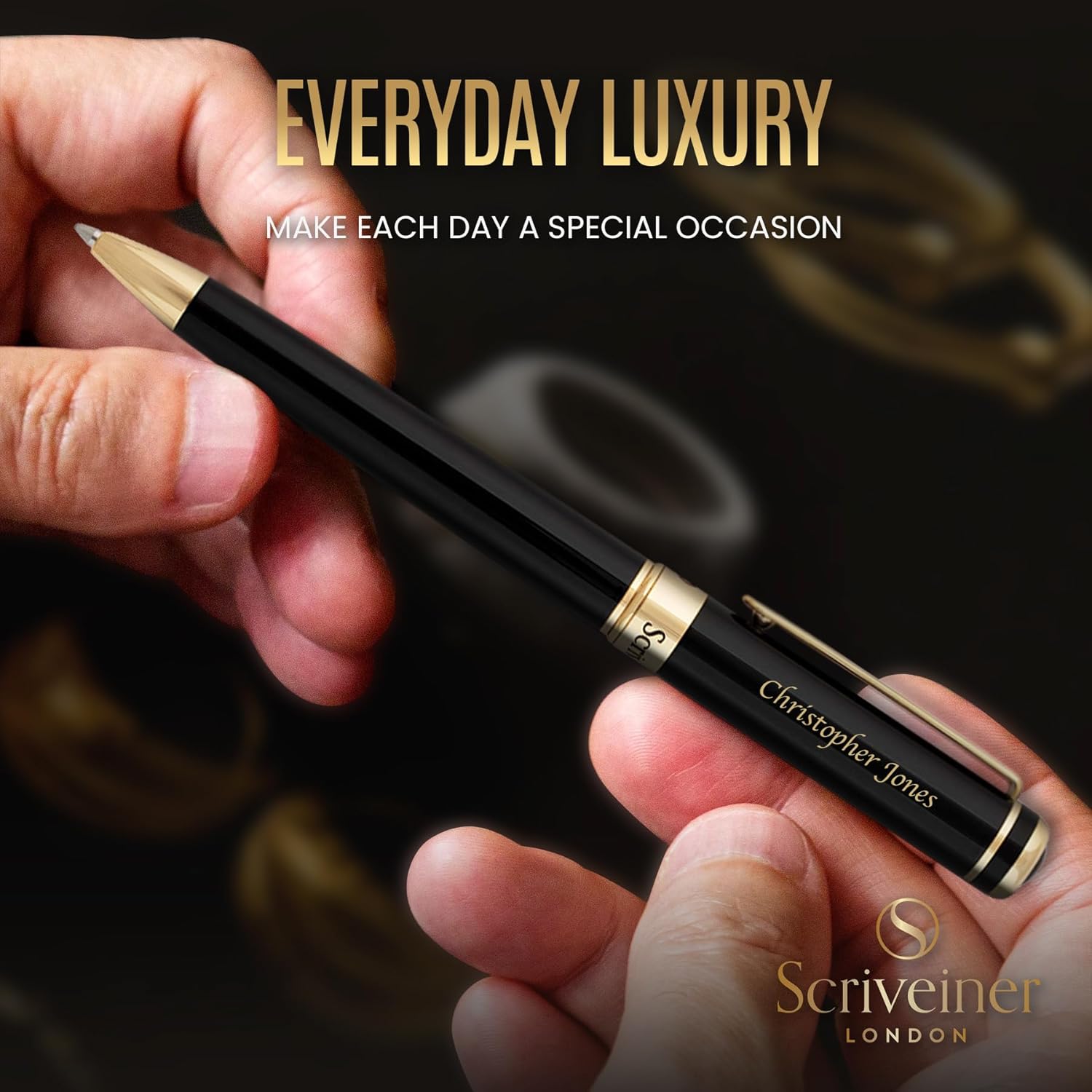 - Enjoy the feel of a true luxury pen in your hand – Stunning luxury ballpoint pen by Scriveiner. Brass with jet-black lacquer finished in real gold plating. Premium quality and understated luxury from a boutique British brand.