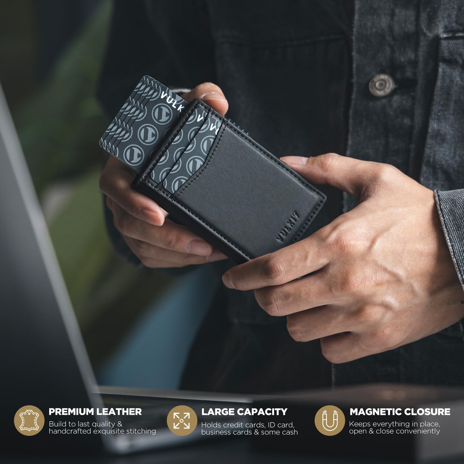 - Large Capacity, Minimalist Design: Design to fit your everyday essentials. It fits easily into your jeans pocket or a lightweight backpack. You can insert 8 to 10 cards (including one visible ID slot) and a small amount of bills as needed.