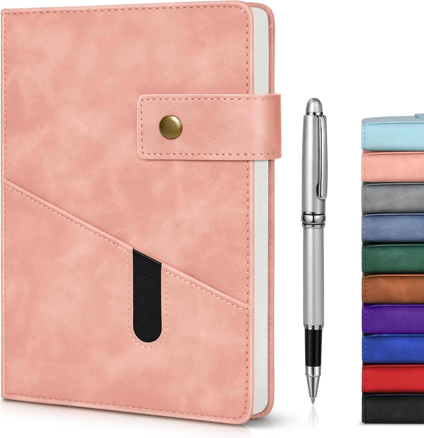 Pink A5 Lined Leather Journal Notebook for Men Women,5.9" X 8.4" Personalized Hardcover Journal with Pen,200 Pages 100 Gsm Thick Ruled Paper Daily Diary for Travel,Business,Work,Writing