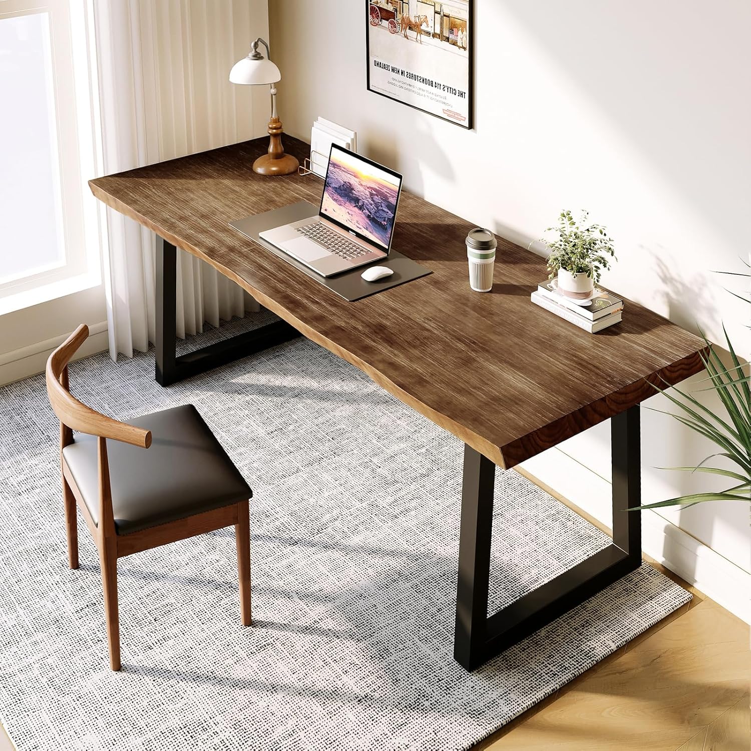 - ăSolid Wood Office DeskăThe dark brown real wood desk seamlessly blends with various interior decor styles.Industrial modern natural look and crafting, plus its exquisite wood grain, all contribute to its personality and the way it enlivens a room and makes an impression.