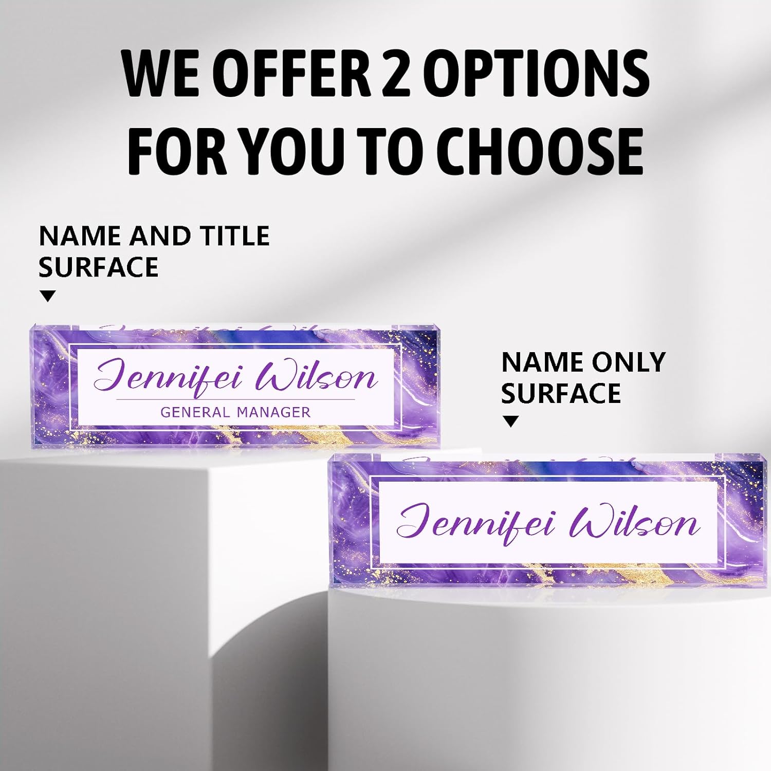 - Custom Name plate: Choose your favorite name plate for desk design style, click the "Customize Now" button, fill in your name and title correctly, please don't worry about the bad effect of the final product, we will have a professional design team to be the final gatekeeper for you, so please start your customization journey and design your own charming works.