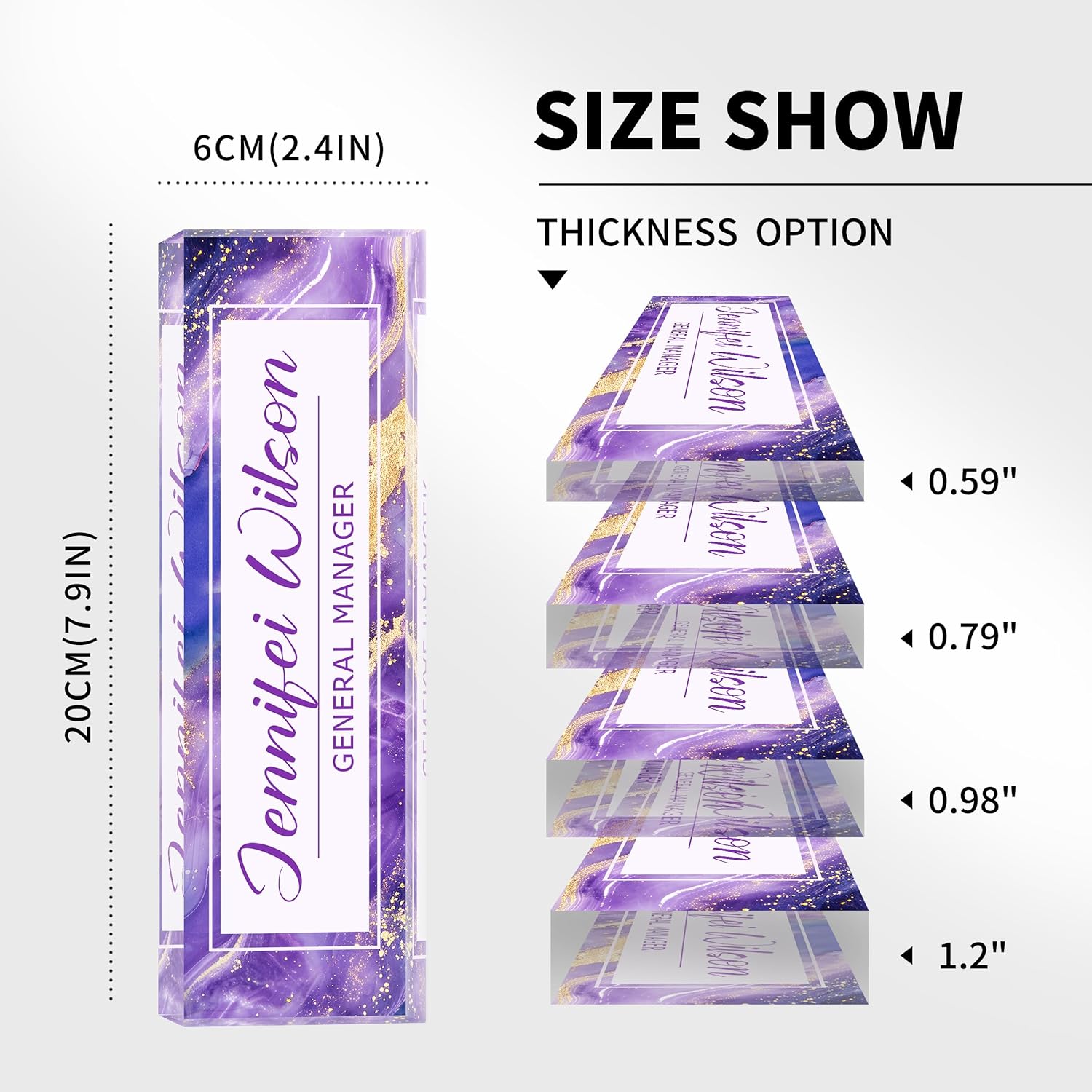 - High Quality Products: This high quality custom desk name plate is made of eco-friendly acrylic material, using the most professional cutting technology, the most advanced HD printing technology and the latest adhesives, which makes the product look beautiful, strong and durable, and the problem of peeling off of the pattern never exists, so please rest assured to buy our name plate for office desk.