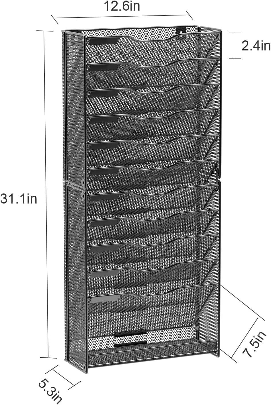 samstar 12 Tier Wall File Organizer, Hanging Wall Mount File Holder Paper Folder Mail Organizer, Mesh Metal, Black.