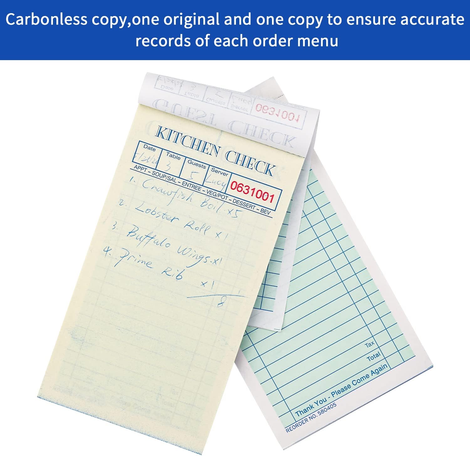 Guest Checks Server Note Pads 300 Sheets with Carbonless Copy Paper for Restaurants (6 Books) 3.5" x 6.75" Per Ticket Book