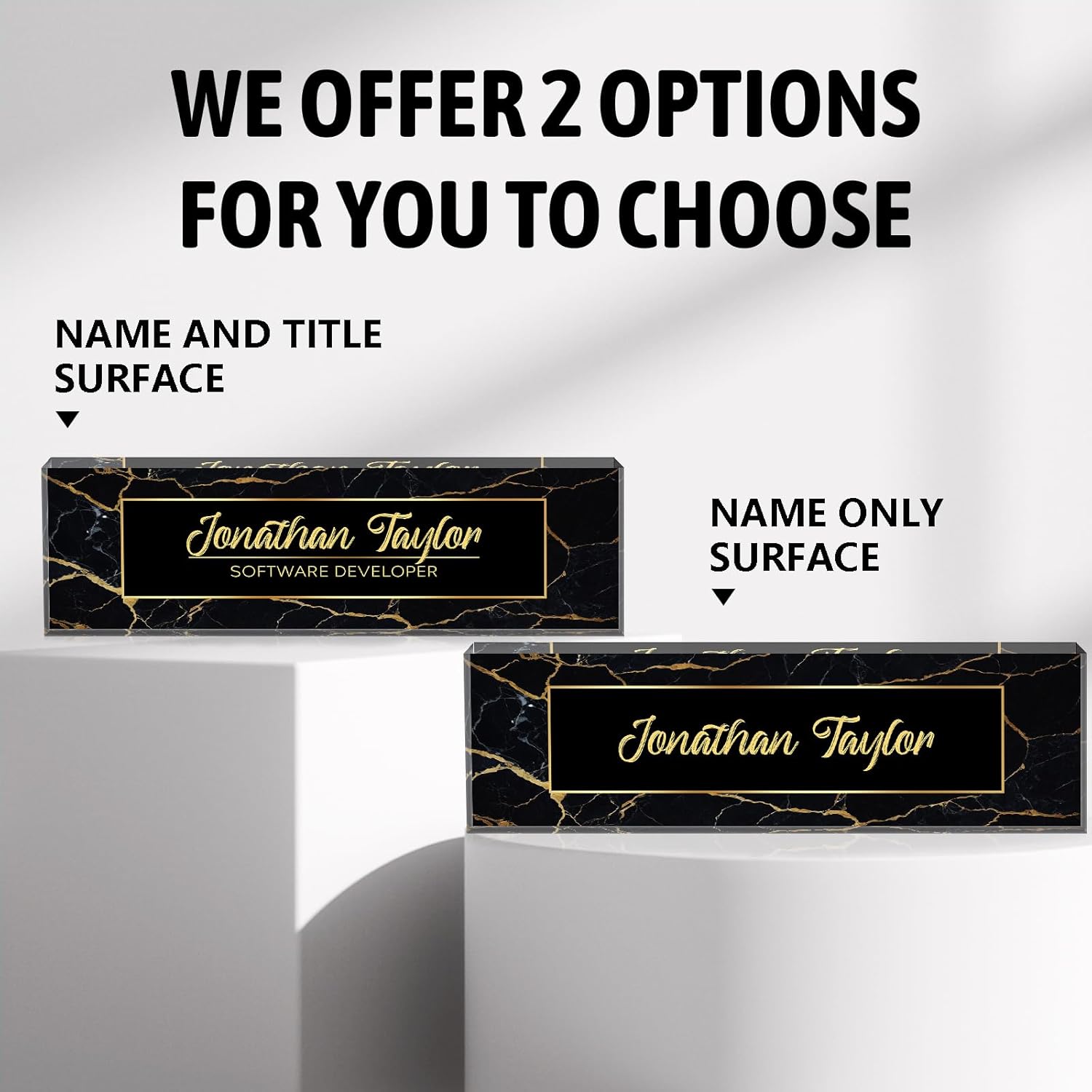 Custom Desk Name Plate Personalized, Acrylic Name Plate for Desk, Office Desk Decor for Women and Men, Employee Appreciation Gifts Office Gifts for Boss, Manager, Teacher, Nurse (Black Gold Marble)