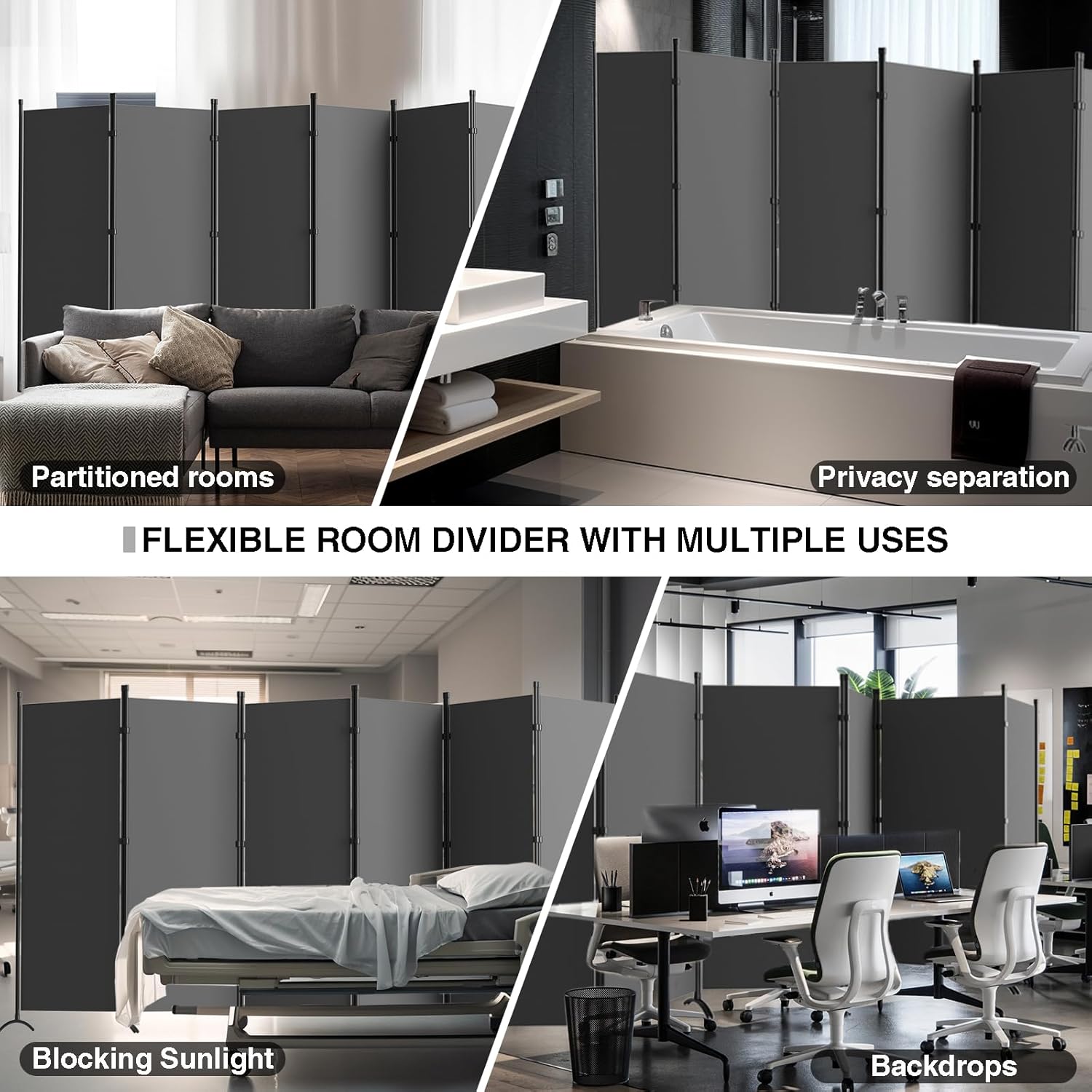 - 【Divider Dimensions】: Dimensions (Per Panel) 71" H x 33" W. Dimensions (Max Extend) 198" W x 71" H, This means that you can use one or six room divider panels depending on your own needs.