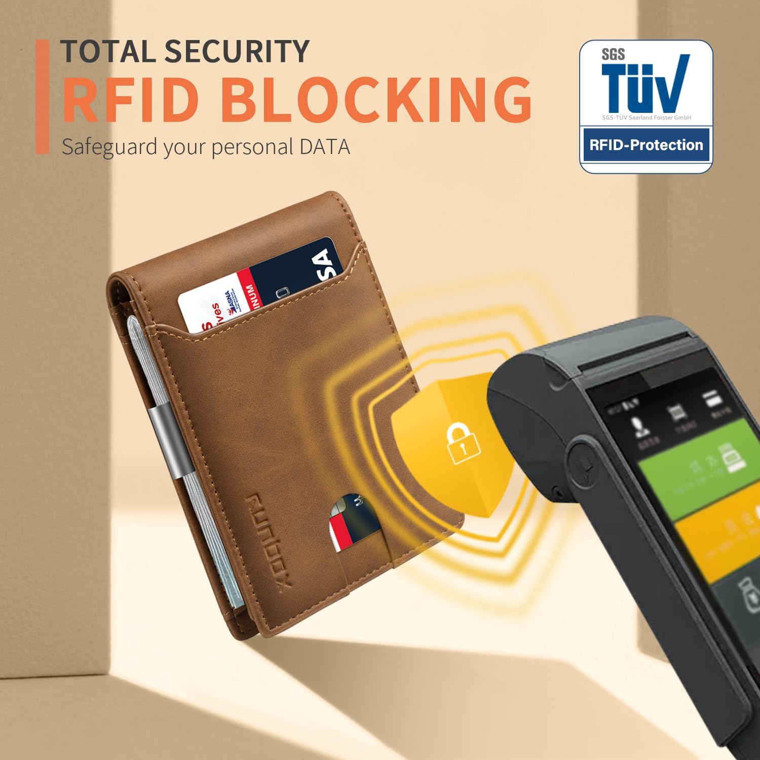 - ππ ππ ππ§ππ’-ππ‘πππ ππππππππ - this slim wallet for men equipped with German Instiute Certified RFID Security technology, a unique metal composite, engineered specifically to block 13.56 MHz or higher RFID signals to protect the valuable information and privacy