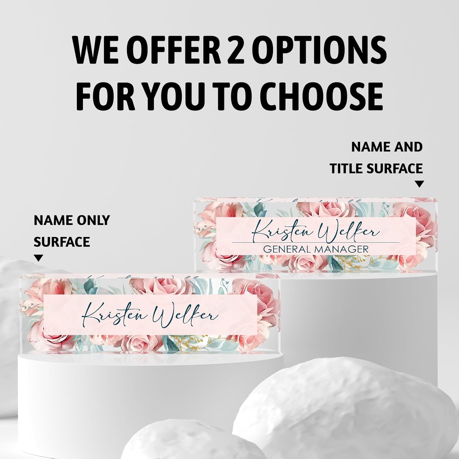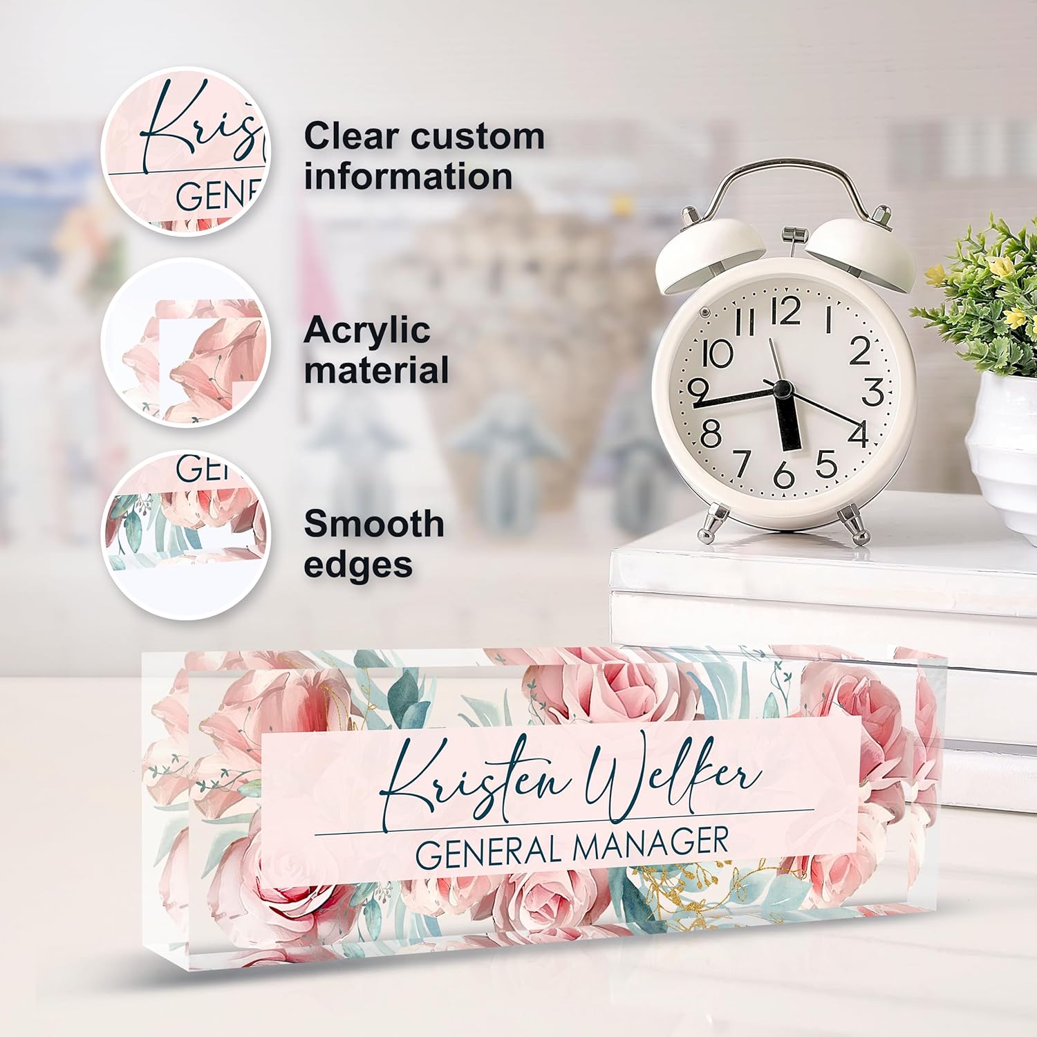 Custom Name Plate for Desk | Personalized Desk Name Plate | Personalized Boss Employee Appreciation Gifts | Acrylic Name Plate Office Desk Accessories (C-Pink Rose)