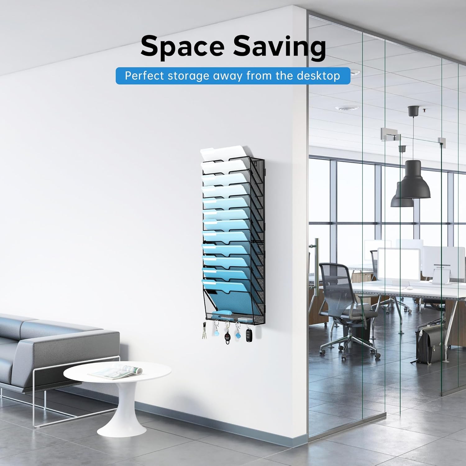 - [Humanize Design] Each wall file organizer with etra 5 sturdy key hooks, you can hang your keys and other small staffs. Hooks design for this wall file holder can remove the trouble to find your keys on the way out the door, saving time in searching.