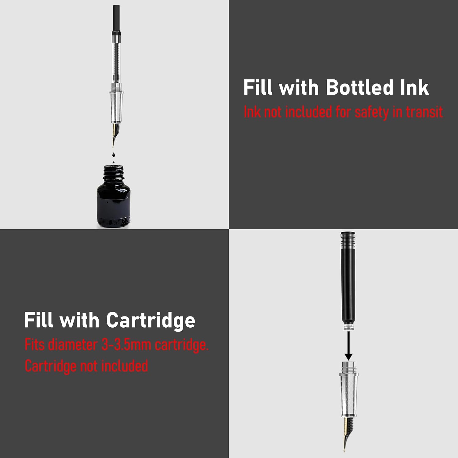 - Fountain Pen Converter Include: Come with a converter for bottled ink, No Ink included for safety in transit. This pen fits diameter 3-3.5mm ink cartridges, No ink cartridges included for safety in transit.