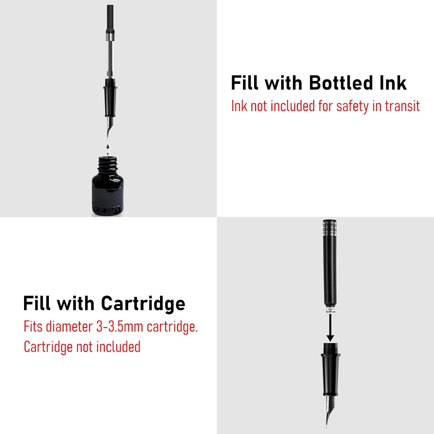 - Fountain Pen Converter Include: Come with a converter for bottled ink, No Ink included for safety in transit. This pen fits diameter 3-3.5mm ink cartridges, No ink cartridges included for safety in transit.