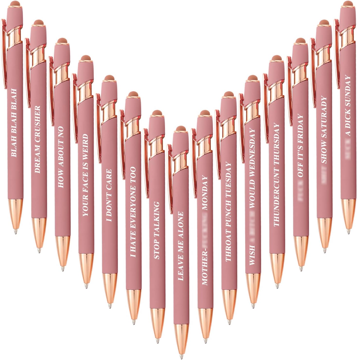 Aozora 15 Pack Ballpoint Pens Smooth Writing 2-in-1 Stylus Retractable Ballpoint Pen with Stylus tip, Office Decor Metal Stylus Pen for Touch Screens, 1.0 mm Black Ink (Funny-Rose Gold)