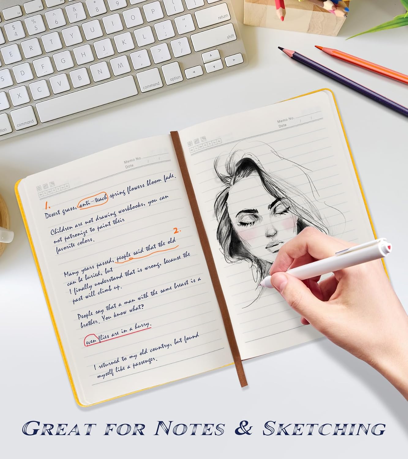 - 【256 Pages Premium Paper】We use 256 Pages (128 Sheets) 80Gsm acid-free paper thick lined paper,Line spacing 8.5mm,so you can confidently use most pens, pencils, and markers without ghosting and bleed-through.The Light yellow paper resists damage from light and air and the paper protects your eyes from irritation.