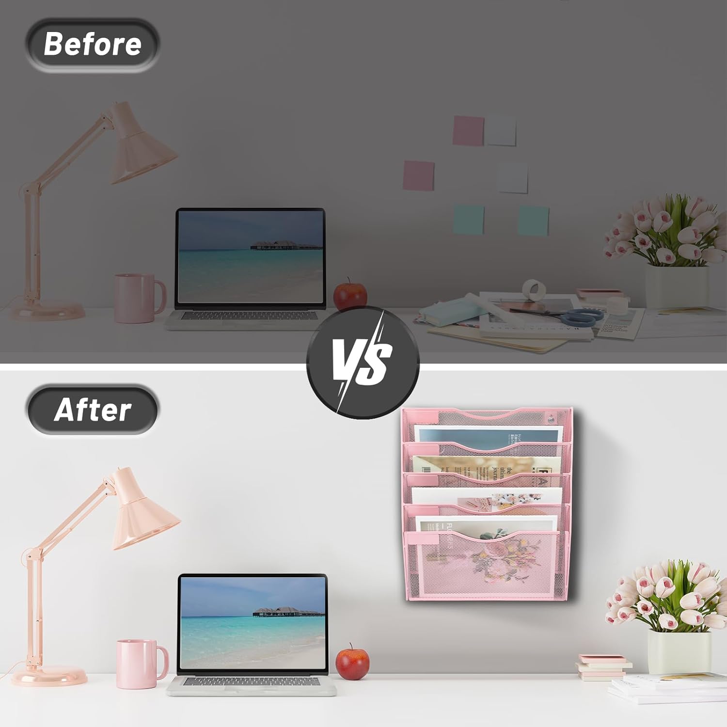 - Stylish Design - Pink wall organizer adds a touch of elegance to your workspace, making it the perfect file organizer for women. It not only keeps your office tidy but also adds a pop of color to your surroundings