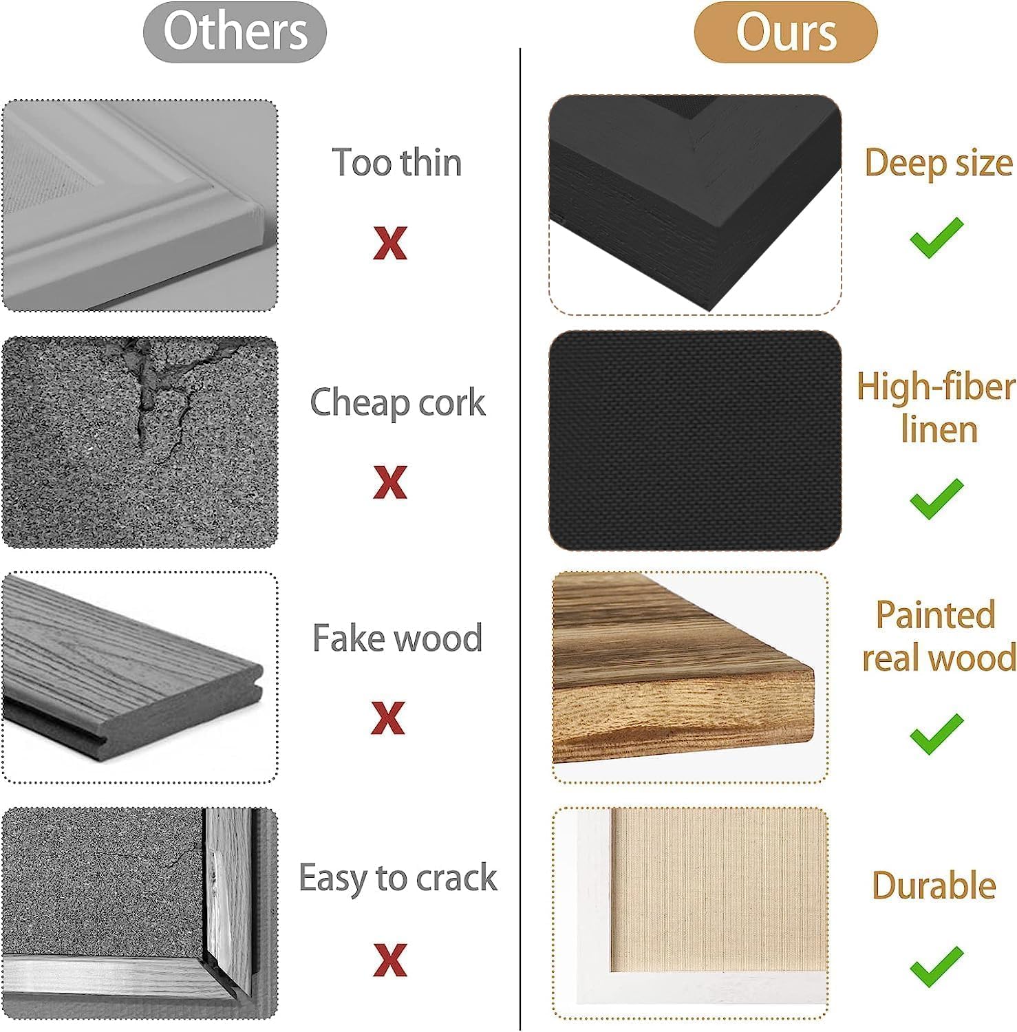 - High-Quality Materials: Our pin board is made with 100% solid wood edges and a high-fiber linen surface, ensuring durability and longevity. We stand behind our product and offer lifetime customer service. If you have any questions or concerns, please don't hesitate