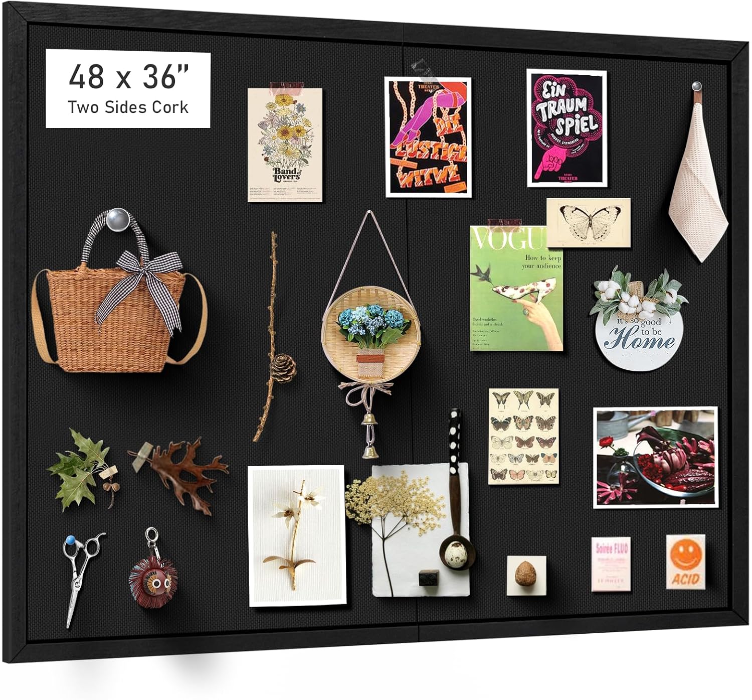 Miratino Large Bulletin Board, 48 "x 36" Black Cork Boards for Walls with Frame, Pin Display Board Vision Board for Home School Office Decor