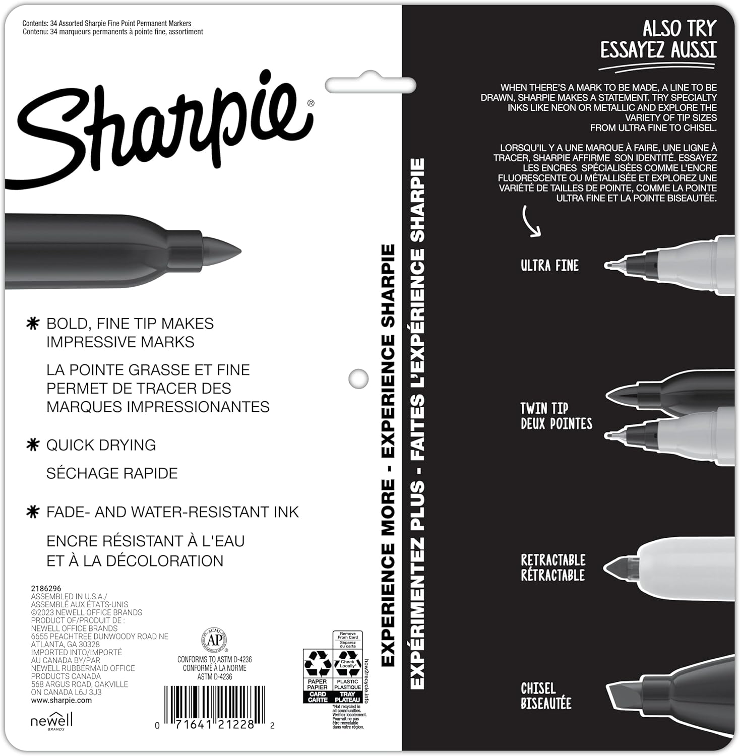 Sharpie Glam Pop Permanent Markers Fine Tip Marker Set Coloring Art Drawing Writing Markers 34 Count