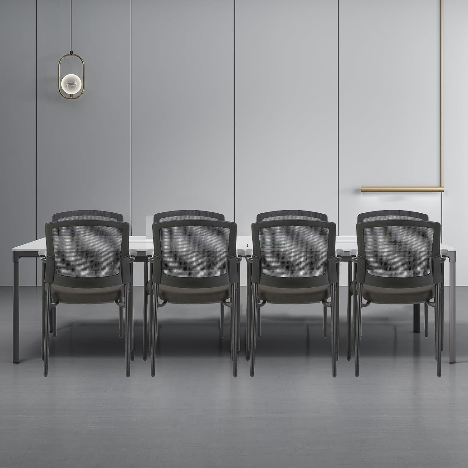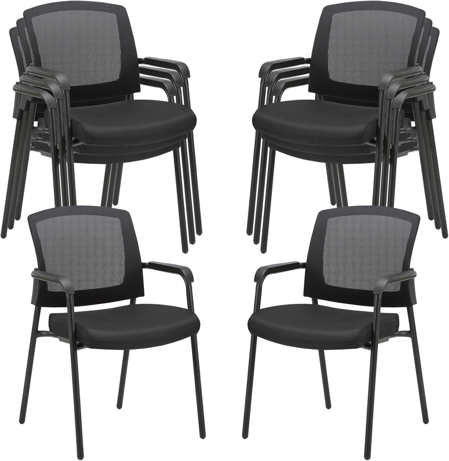 CLATINA Black Stacking Chairs Stackable Waiting Room Chairs with Armrest, Mesh Office Reception Guest Chair for Home Desk Conference Lobby Church Medical Meeting Training Ergonomic, Set of 8