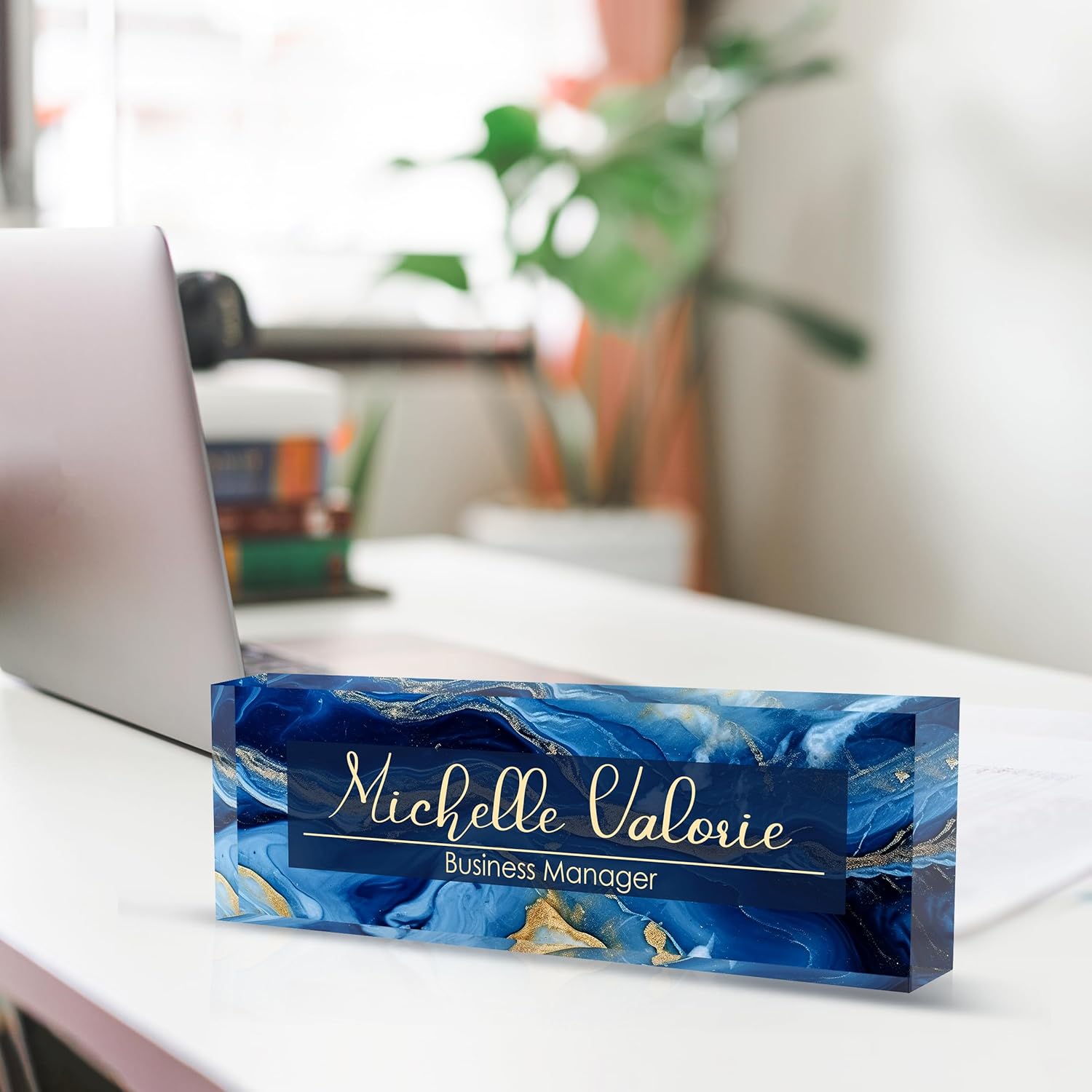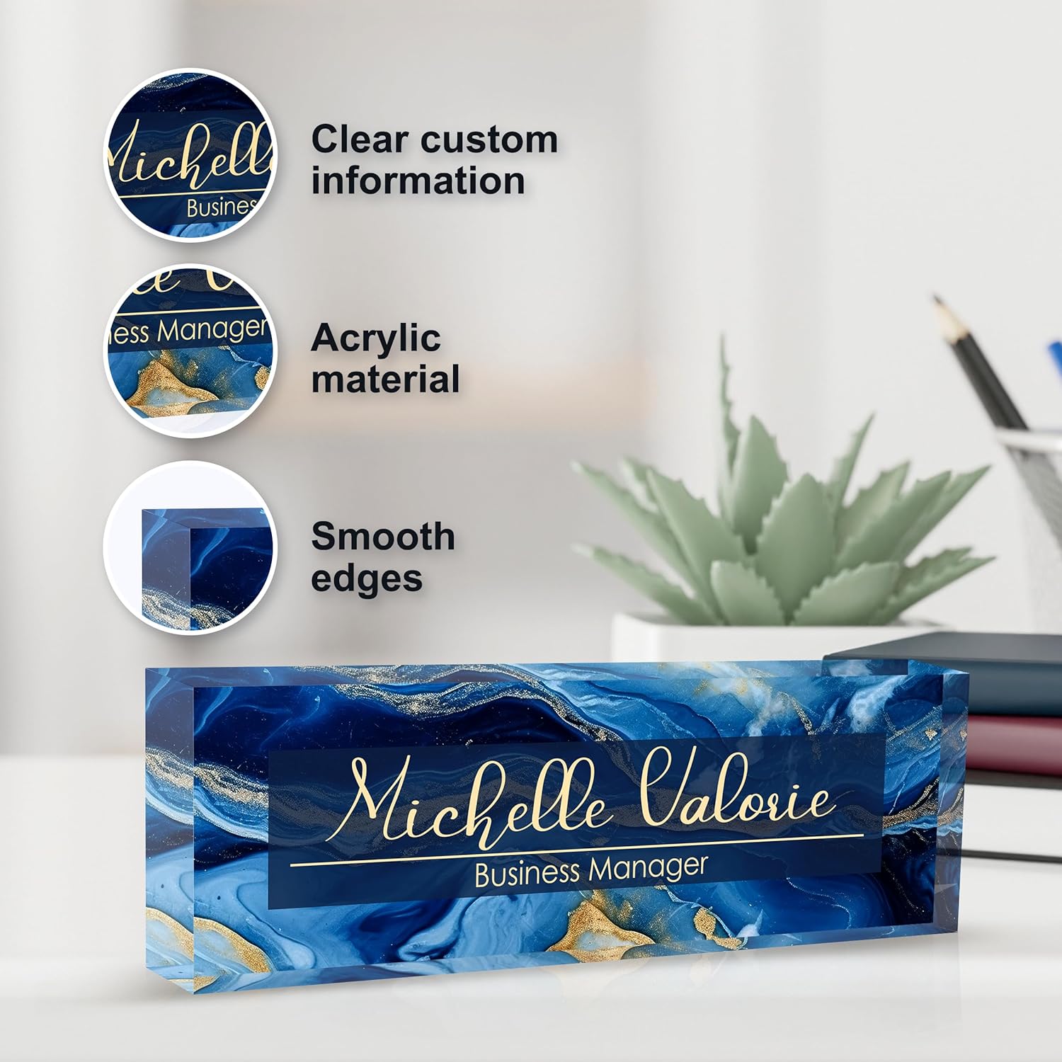 Personalized Name Plate for Desk, Custom Desk Name Plate, Acrylic Name Plate Office Desk Accessories, Personalized Office Gifts for Coworkers Teachers, Employee Appreciation Gifts (B-Blue Marble)