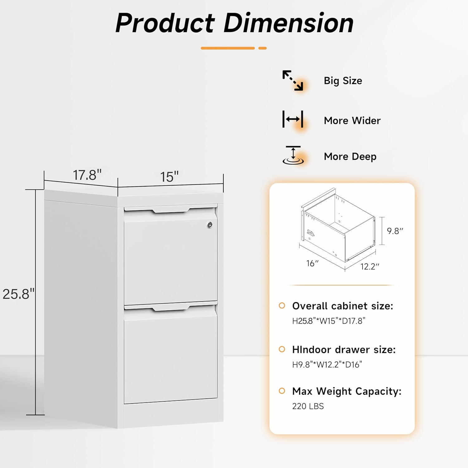 Bestoo 2 Drawer File Cabinet, 17.8" Deep Filing Cabinet for Home Office, Metal Vertical File Cabinet with Lock for Letter/Legal/A4/F4 Size, Easy Assemble (White)