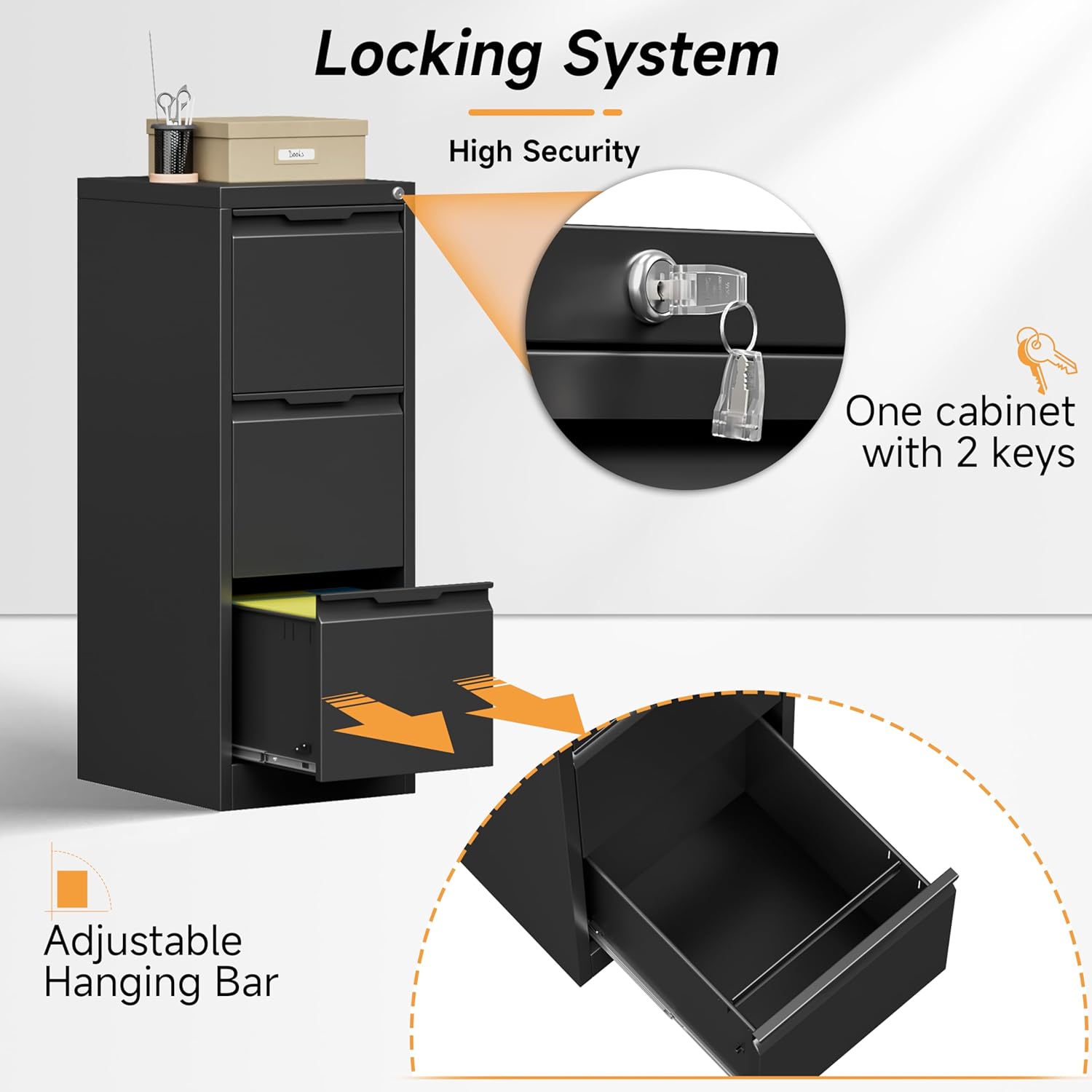 - đď¸ăLOCKABLE FILE DRAWERSă: Metal vertical file cabinets come with one lock and two keys. All drawers can be locked at the same time and the entire file cabinet can be locked with just one key for convenience and peace of mind. Keeps files safe and provides security for your home and office.