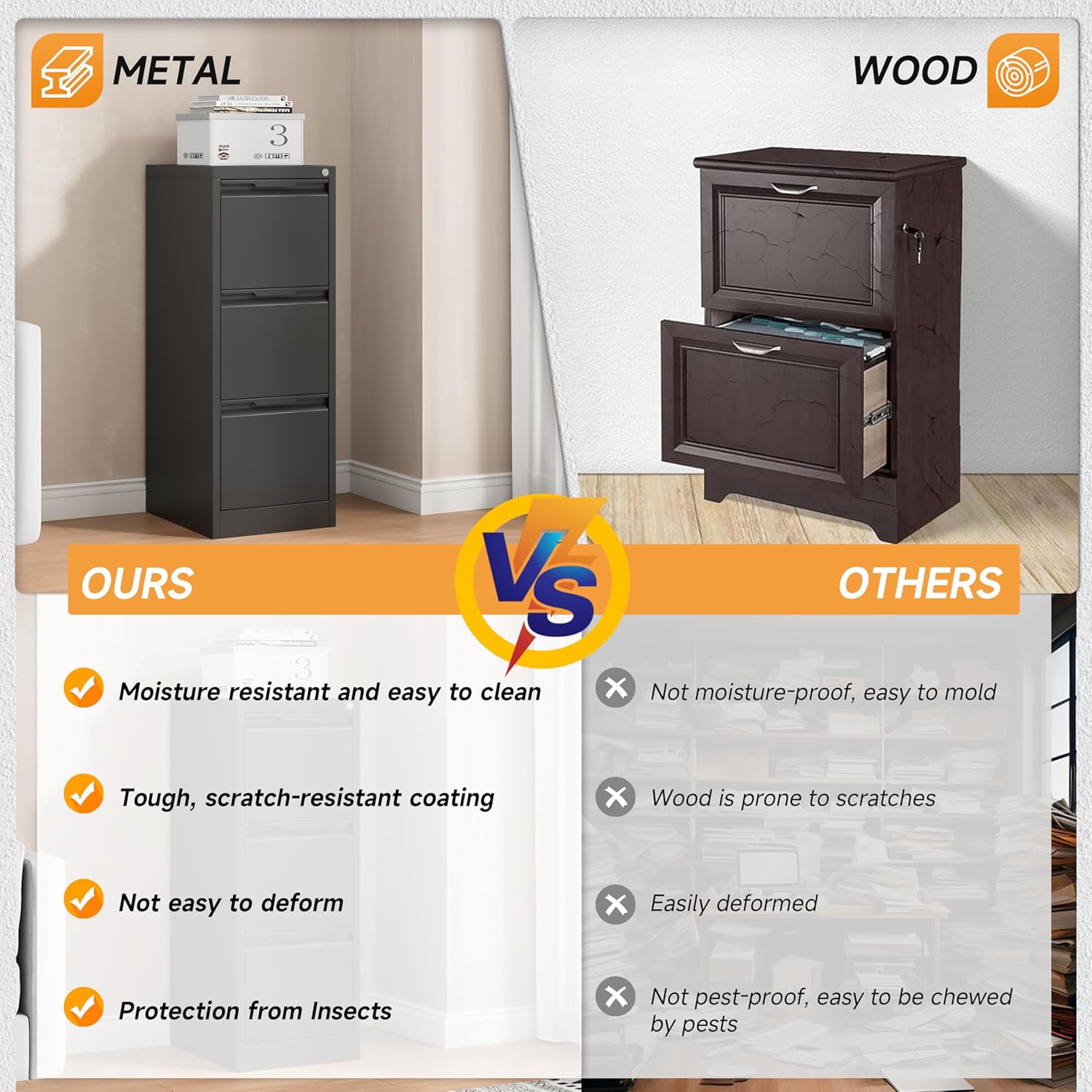 - đď¸ăSTURDY HEAVY DUTY FILE CABINETă: The office file cabinet is made of all-steel material, sturdy and durable not easy to deform. It can hold a large number of files! The surface is powder coated technology, clean and smooth, rust and corrosion resistant. Perfect for long term use! It is ideal for office and home storage!