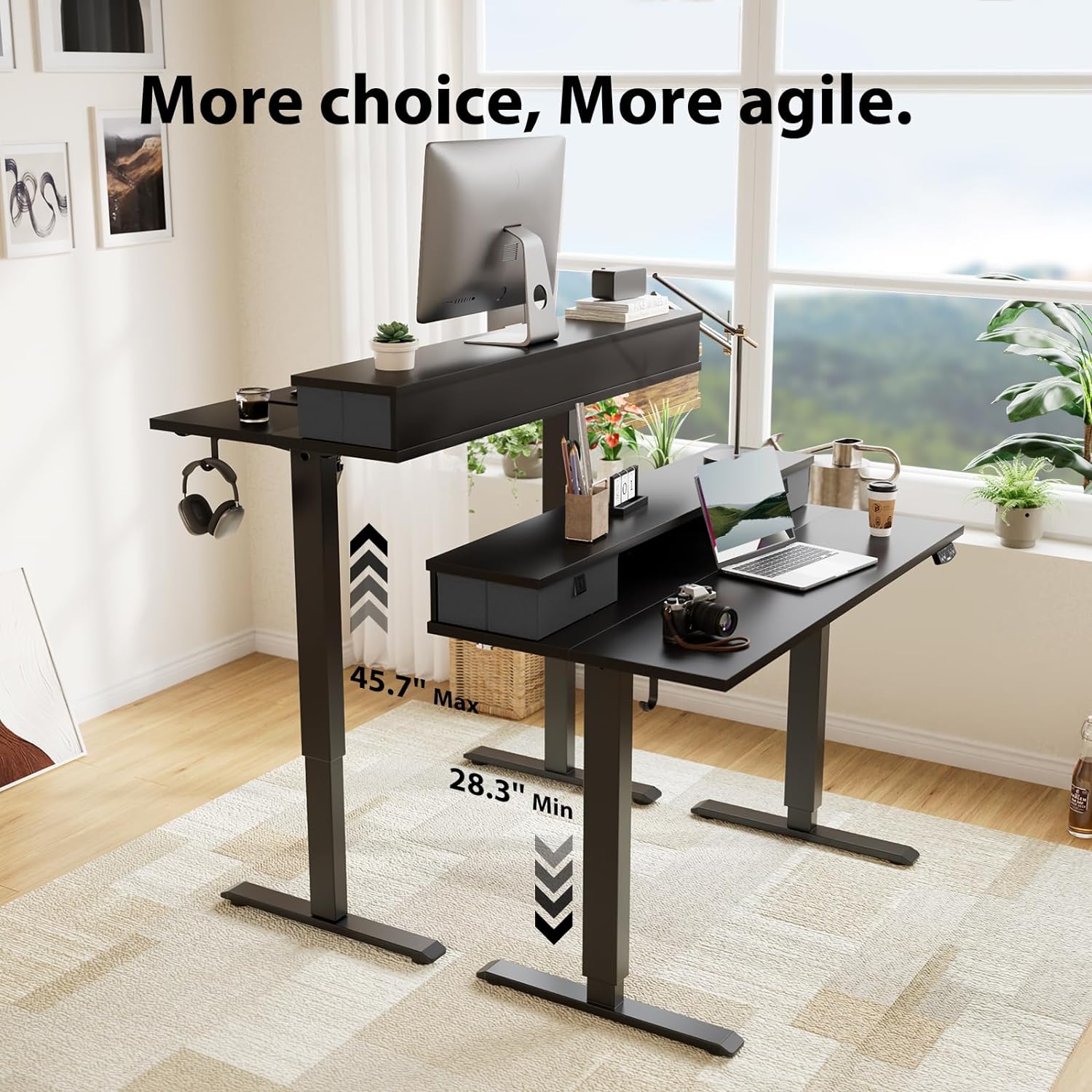 Agilestic 55 x 24 Inches Electric Standing Desk with 2 Storage Drawers, Stand Up Desk Adjustable Height, Sit and Stand Computer Table with Splice Board, Black
