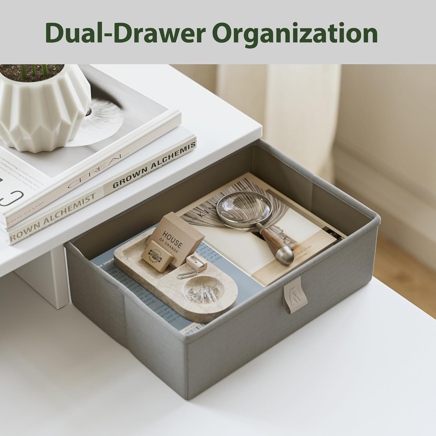 - ăPractical fabric drawers] The top shelves with double drawers perfectly collect all office supplies with spacious storage space. Portable fabric design is practical for picking and placing.