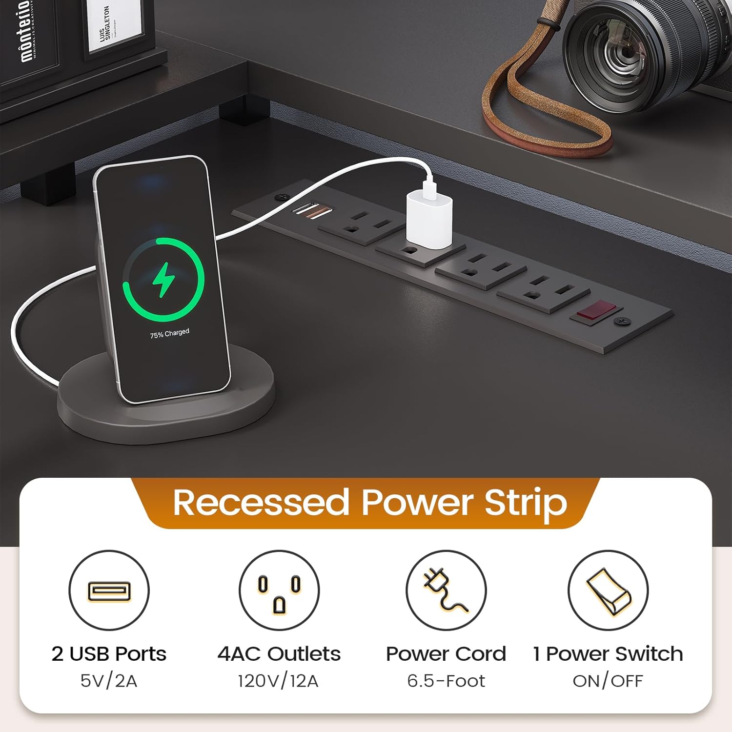 - ăUser FriendlyăThe L shaped computer desk includes a built-in power strip with 4 outlets & 2 USB Ports provides convenience for charging your gaming gear, tabletăprinter or phone.Don't worry about not having enough power sockets. Also includes an on-off switch, thanks to the on-off switch, one-button power off to ensure safe electricity use, which strengthens security.