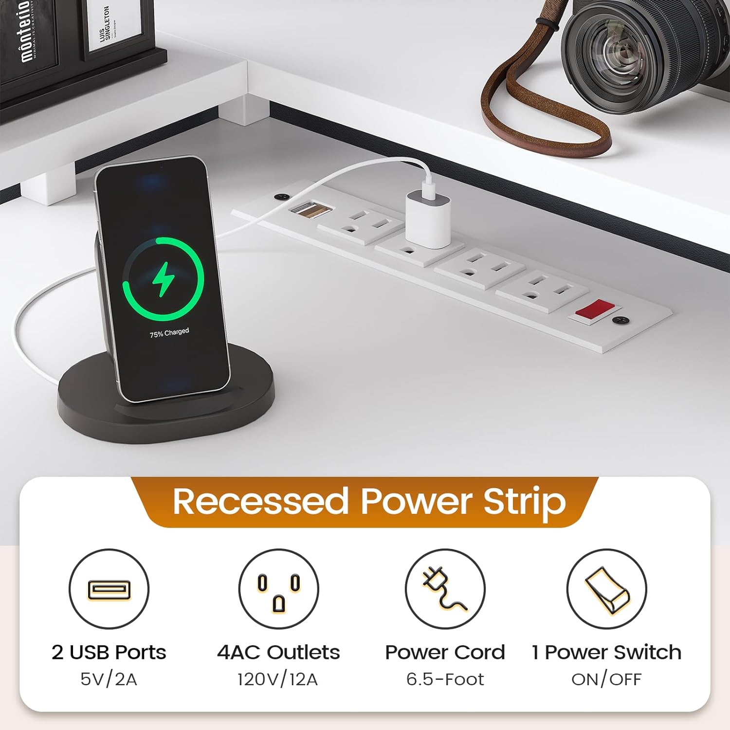 - 【User Friendly】The L shaped computer desk includes a built-in power strip with 4 outlets & 2 USB Ports provides convenience for charging your gaming gear, tablet、printer or phone.Don't worry about not having enough power sockets. Also includes an on-off switch, thanks to the on-off switch, one-button power off to ensure safe electricity use, which strengthens security.