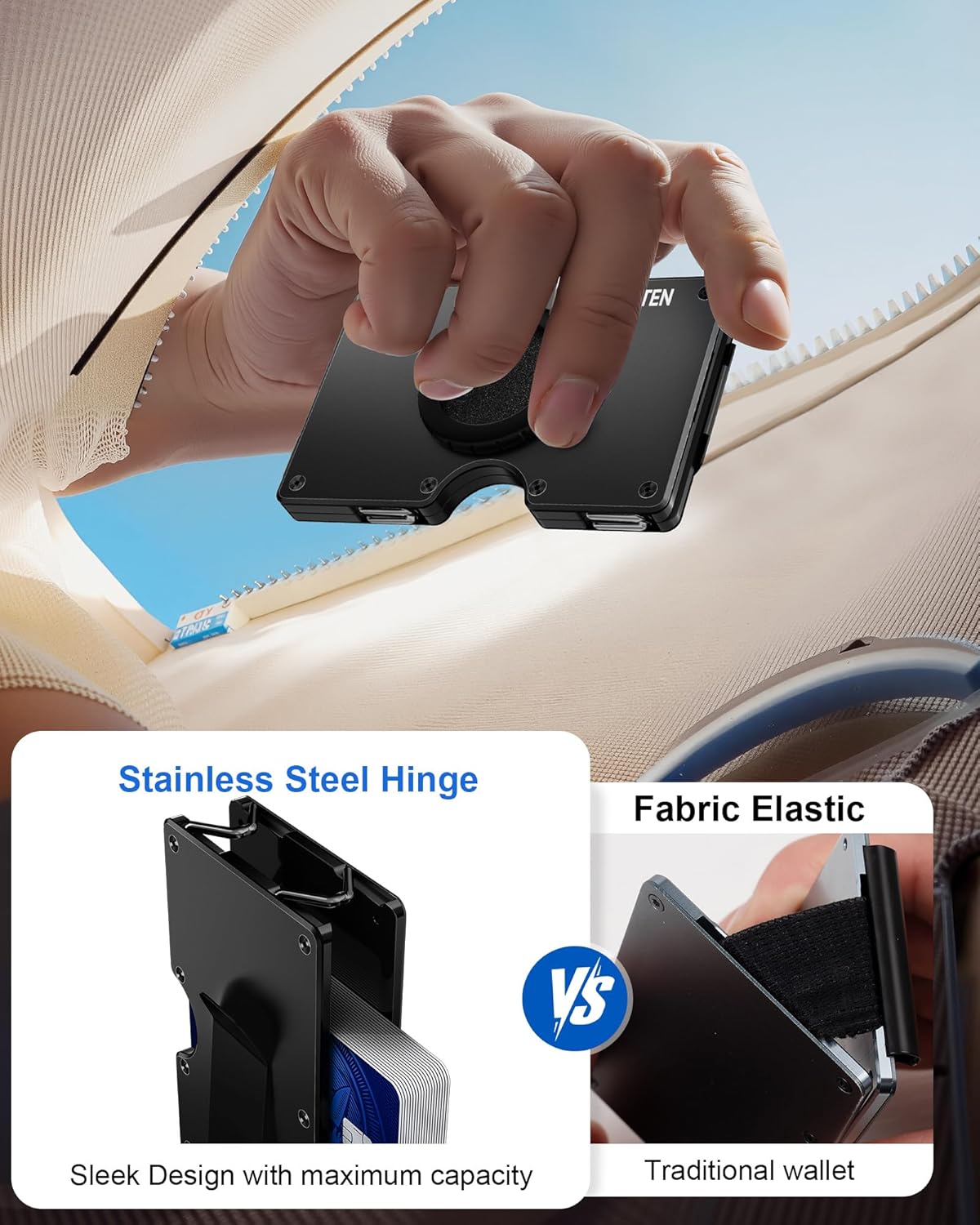 - Slim Wallet for Men: A slim mens money clip wallet, light metal cardholder for men, fashionable and convenient appearance. Flexible webbing greatly improved the card holding capacity, it convenient for card carrier.