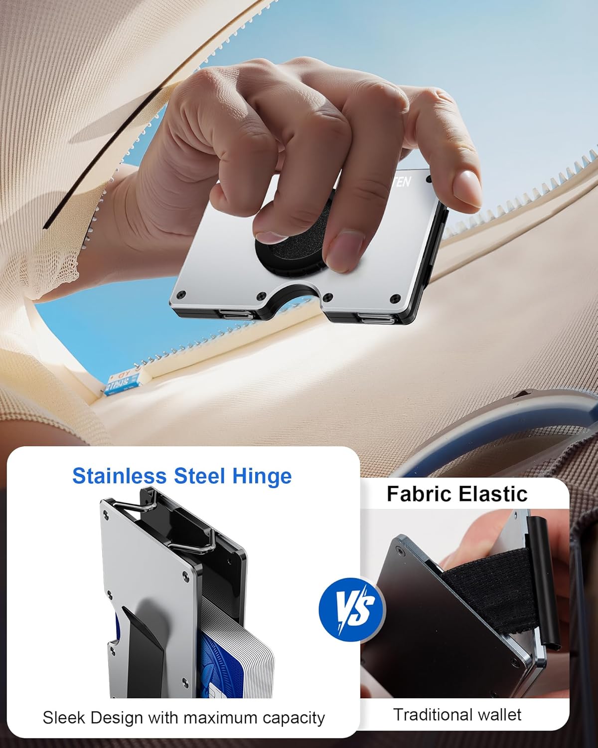- Slim Wallet for Men: A slim mens money clip wallet, light metal cardholder for men, fashionable and convenient appearance. Flexible webbing greatly improved the card holding capacity, it convenient for card carrier.