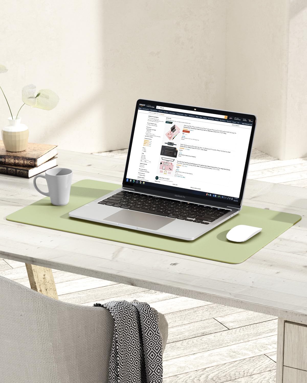 YSAGi Non-Slip Leather Desk Pad, Waterproof Laptop Computer Desk Keyboard Mat, Table Protector Blotter Mat, Large Mouse Pad for Office/Work/Home/Decor(Matcha Green, 23.6" x 13.7")