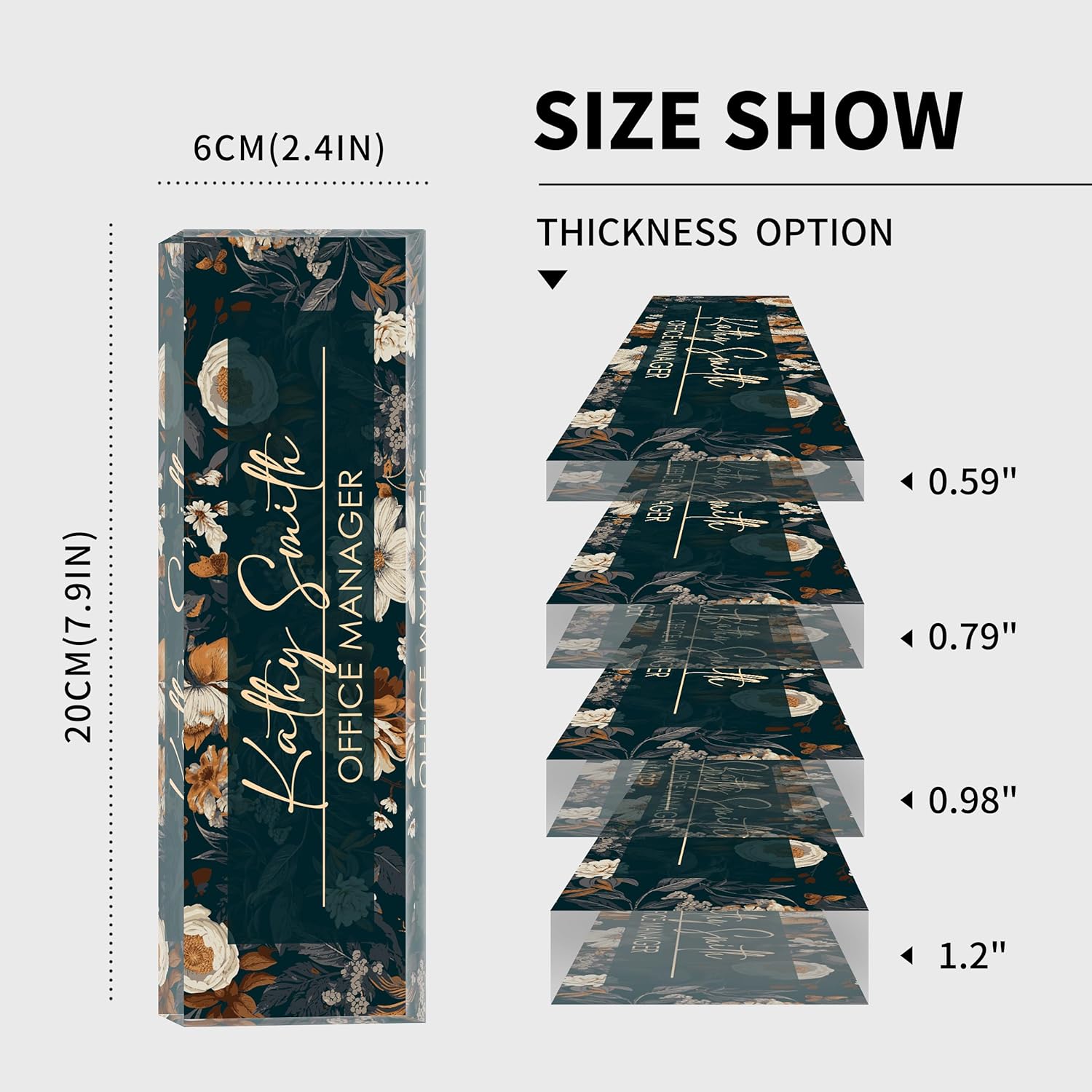 - 【Perfect Office Decor】Desk name plate personalized may be an indispensable item around you. It can be used as decoration for various occasions, such as offices, study rooms, conference rooms, classrooms. It also comes in 4 different sizes, suitable for different office scenarios, Clear 3D effects showcase your favorite fully designs and names, add an extra touch of elegance to your office.