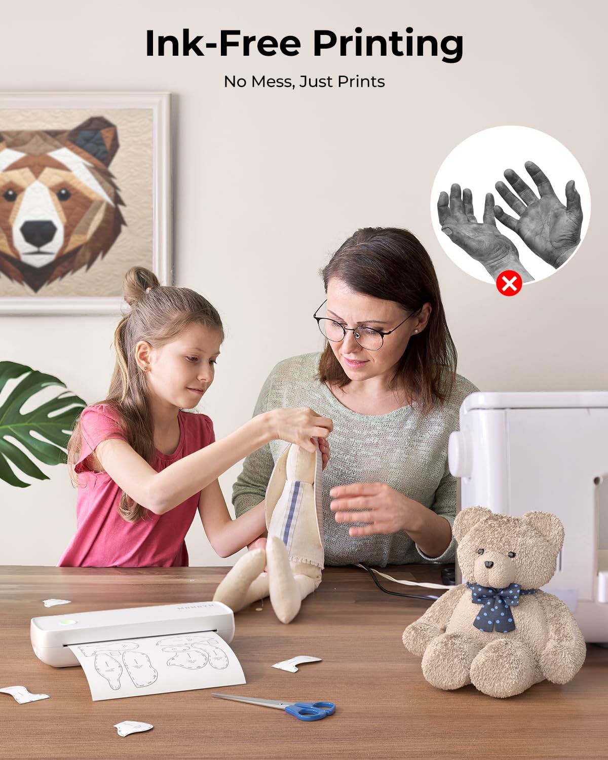 MUNBYN Portable Printers Wireless for Travel ITP04, Inkless Printer, Thermal Bluetooth Printer, Support 8.5x11&A4 Thermal Paper, Compatible with Android and iOS Phone & Laptop, Small Printers (White)