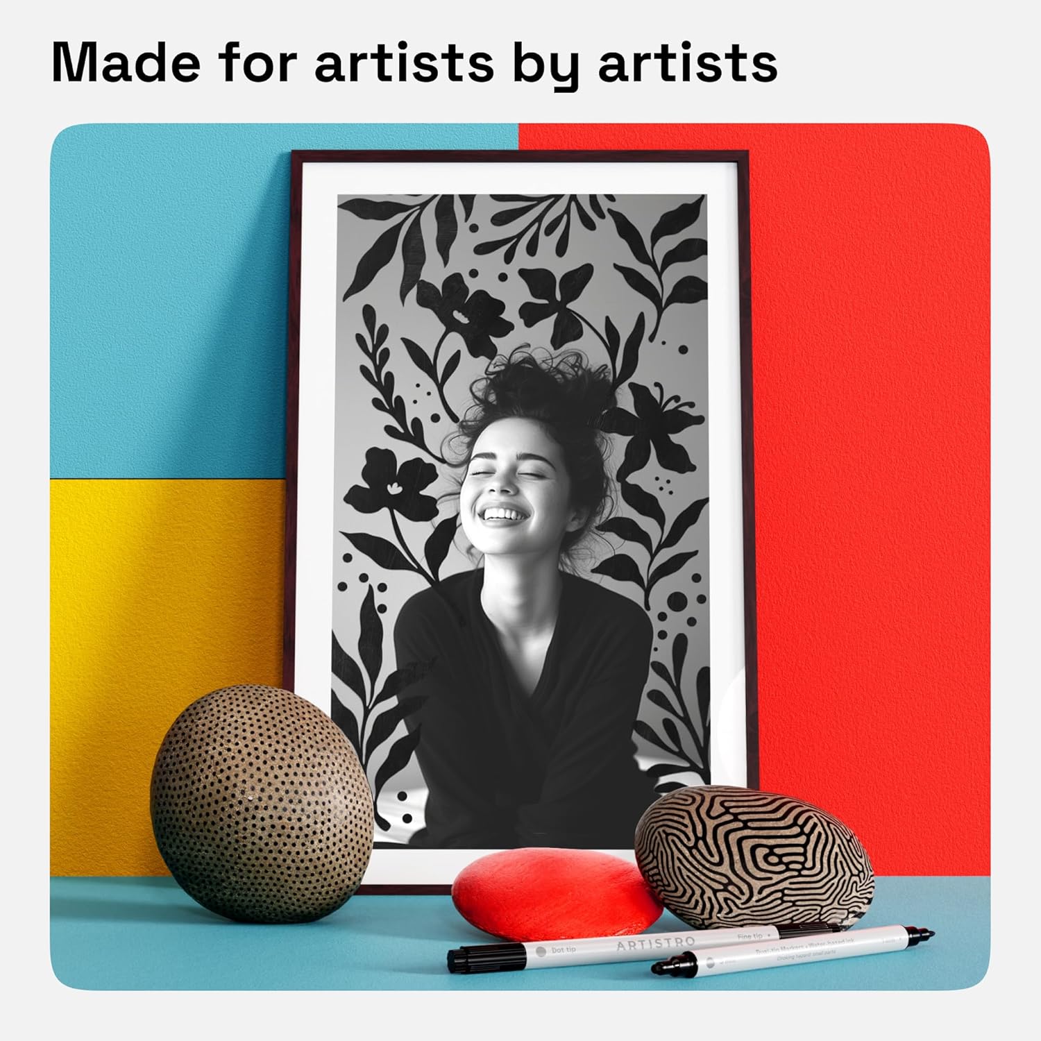 ARTISTRO 5 Black Dual-Tip Acrylic Paint Pens for Rock, Ceramic, Glass, Wood, Fabric - Black Markers for Acrylic Painting, 5mm Dot + 1mm Fine Tips