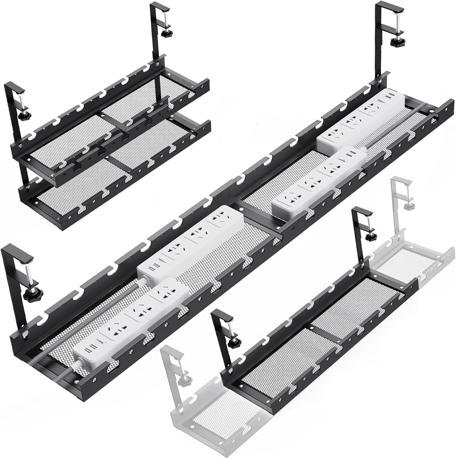 - NO DRILLING & EASY TO INSTALL: Instead Of Drill Your Desk And Damage The Desk With Screws, Our Under Desk Cable Management Tray Can Be Hanged Directly To Desk With Clamp, And Easily Change Its Length As Needed, Easy To Install Without Instructions, Make Your Management Plan Easy.