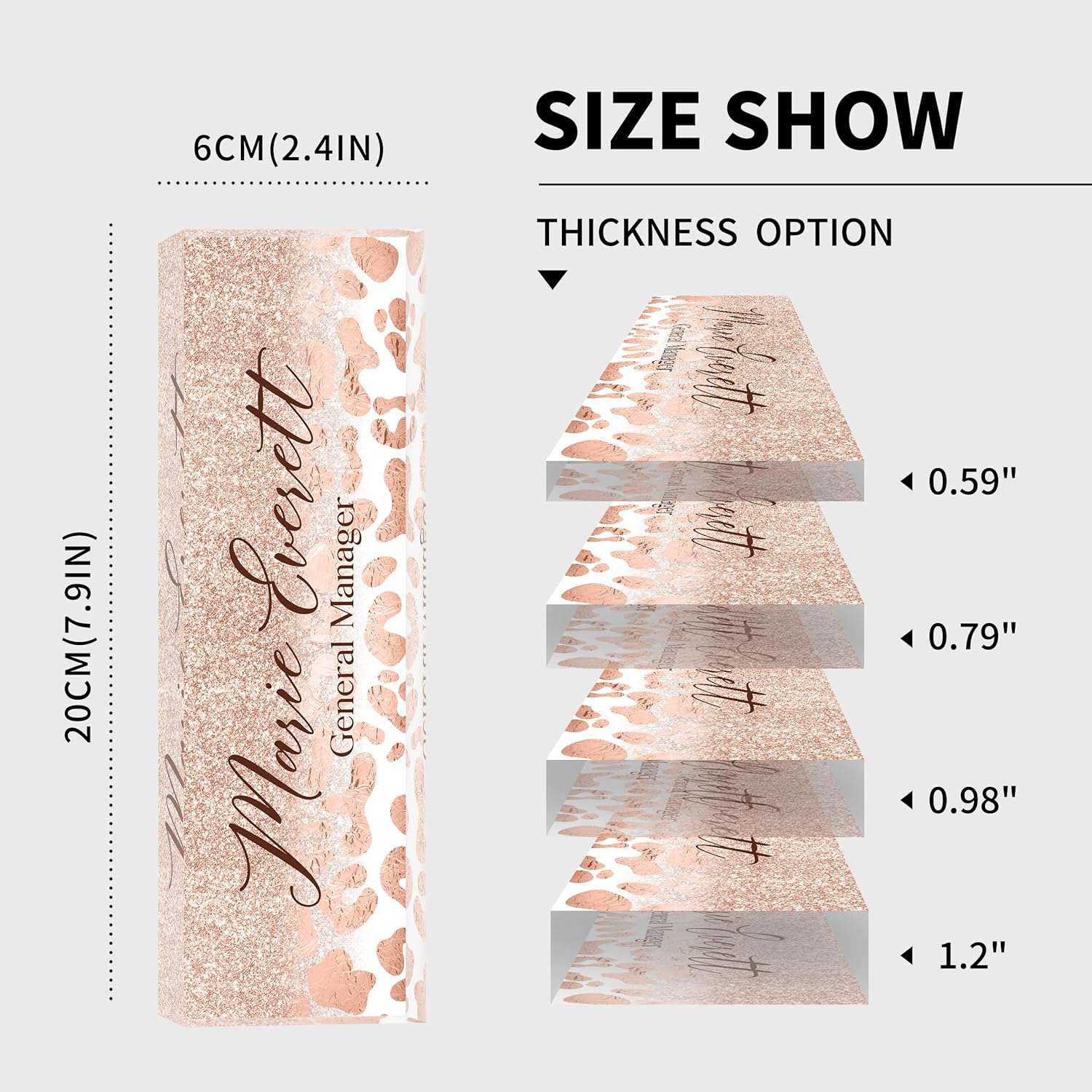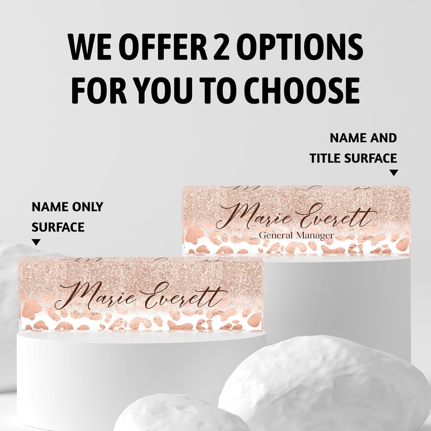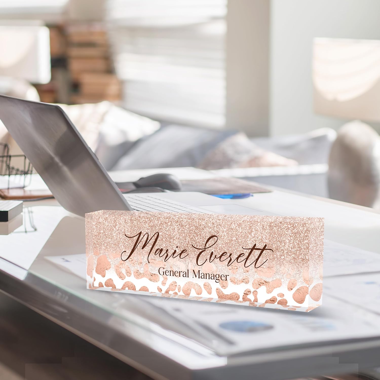 Custom Name Plate for Desk | Personalized Desk Name Plate | Personalized Boss Employee Appreciation Gifts | Acrylic Name Plate Office Desk Accessories (A-Rose Gold Leopard Print)