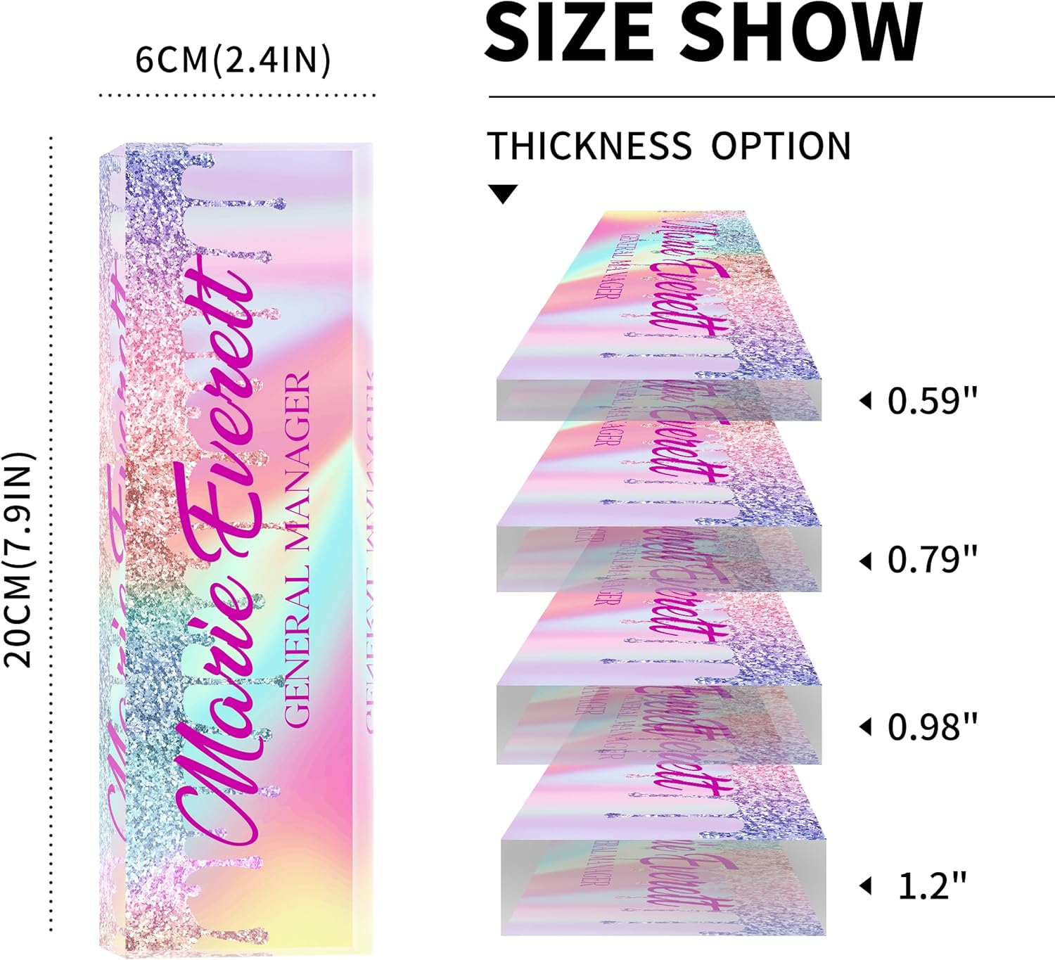 - 【Premium Acrylic Materials】:We use high-quality transparent and environmentally friendly acrylic blocks to make custom name plates, and use the most advanced HD printing technology and super strong adhesives to make the name plate content clear and never fall off. And because of its sturdy and durable characteristics, the acrylic name plates can become a permanent desk decoration.