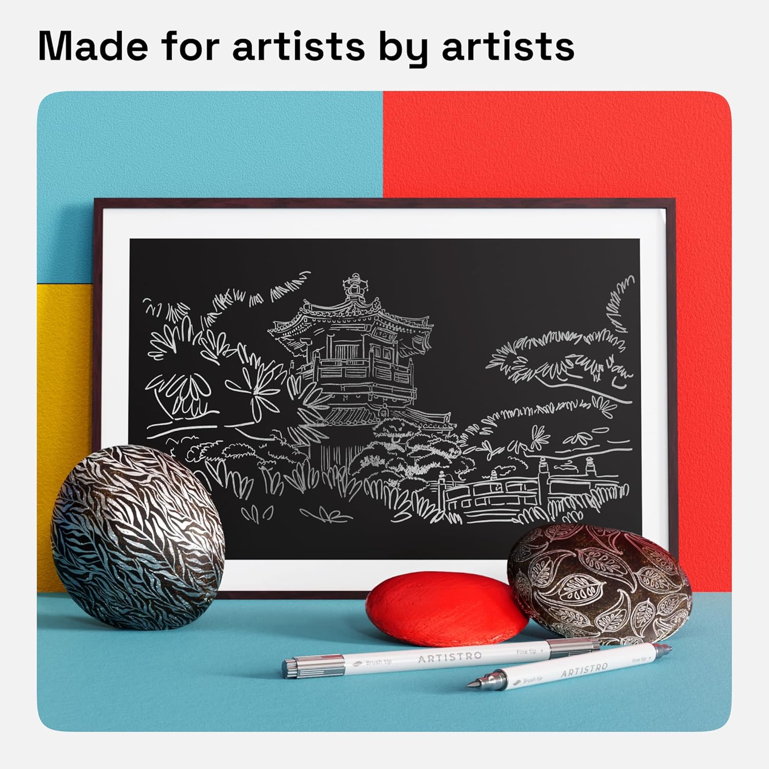 ARTISTRO 2 Silver Dual-Tip Acrylic Paint Pens - Multisurface Markers for Fabric, Plastic, & More, 1 mm Fine & Brush Tips