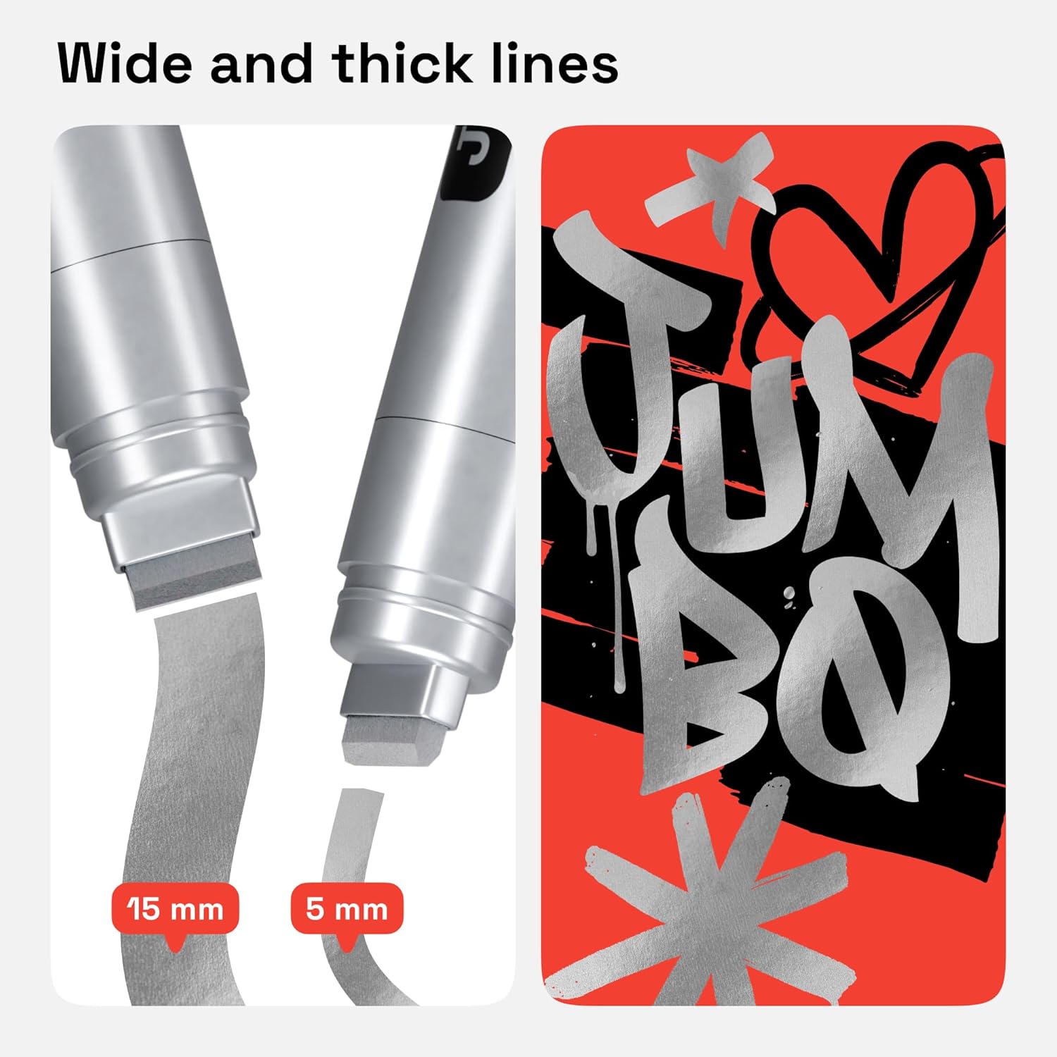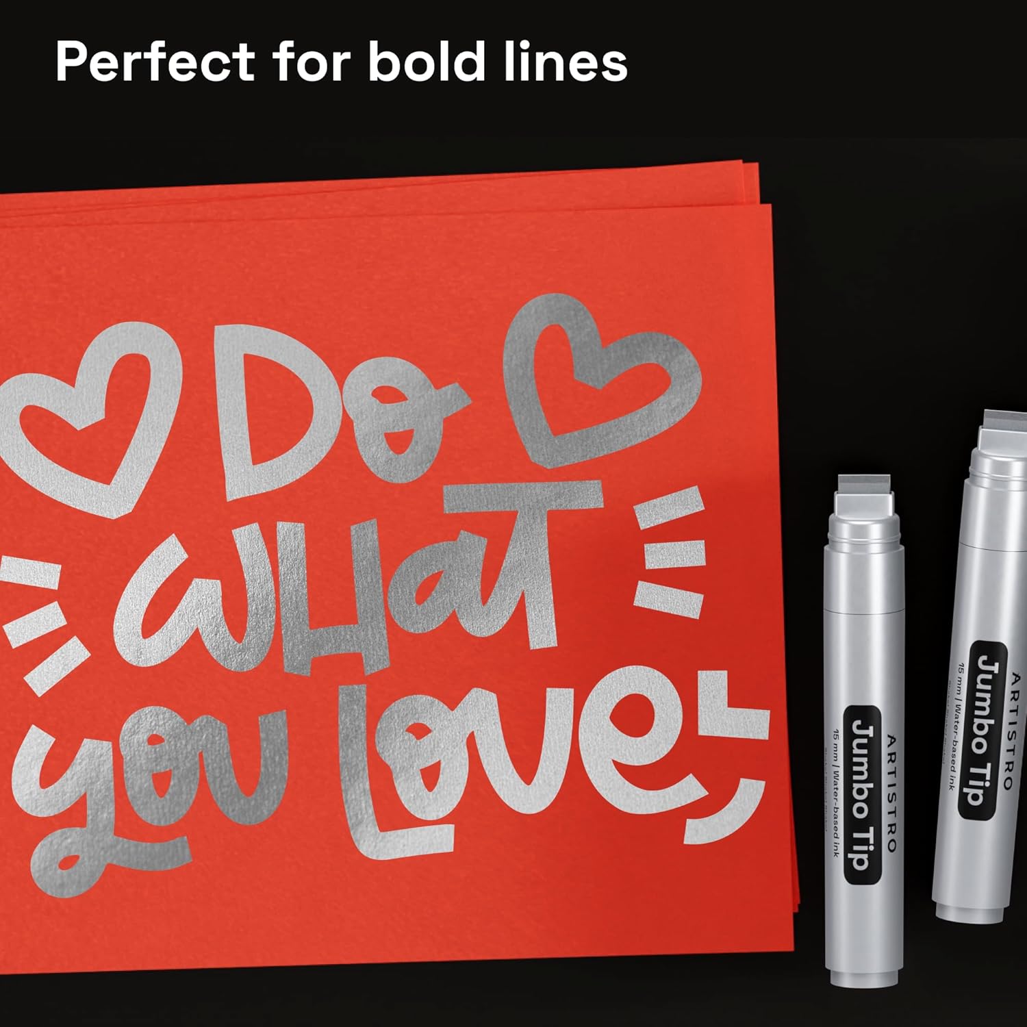 ARTISTRO 2 Silver Acrylic Paint Markers - 15mm Jumbo-Tip Paint Pens - Perfect for Crafting, Art Projects, & More