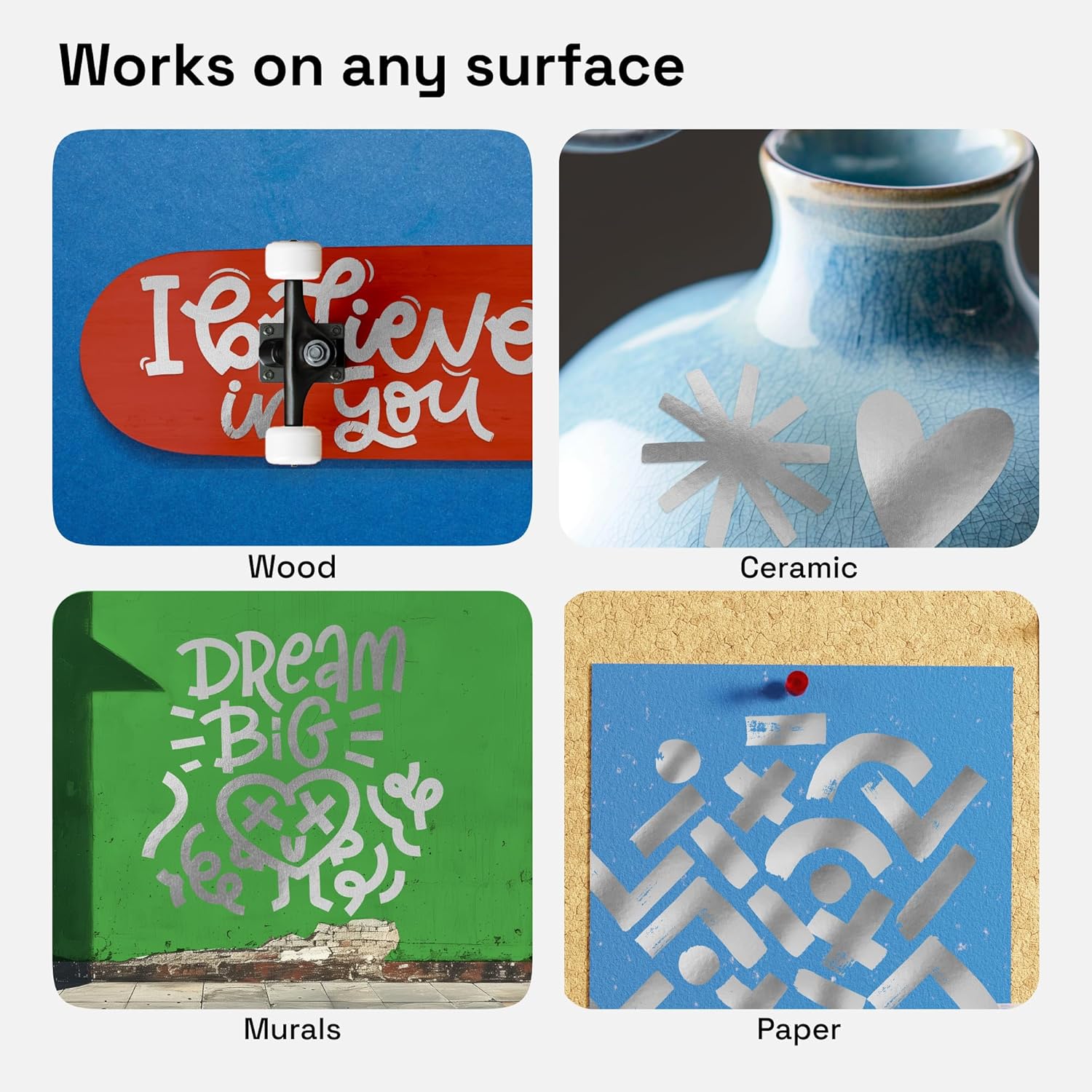 - PREMIUM QUALITY: This Artistro 2-pack of Jumbo Silver acrylic paint pens utilizes vivid, acrylic ink that dries quickly to produce a durable opaque and glossy finish on any surface. Each acrylic paint pen is equipped with Italian ink and a durable Japanese nib.