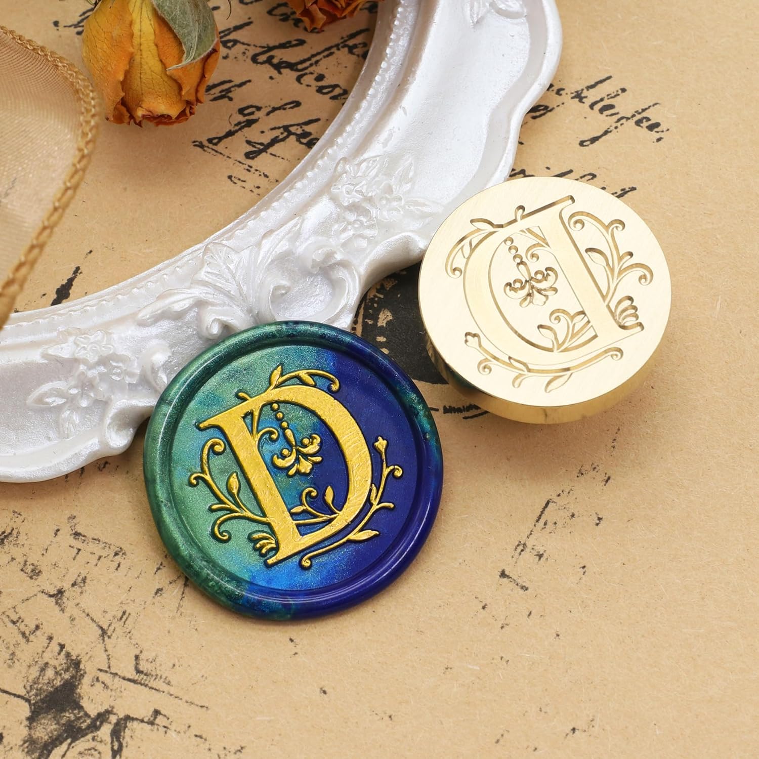 - WAX SEAL STAMP MATERIAL: Made of wooden wax stamp handle and brass seal stamp head, easy to use and clear, the sealing stamp head is smooth and shiny, non-stick. Removable wax stamp head, easy to change and install.