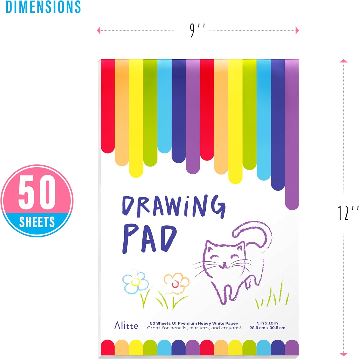 Alitte Drawing Pad for Kids - 6-Pack (9x12) Drawing Paper with Easy-Tear Pages - 50 Sheets - Kids Art Supplies | Sketch Pad for Drawing & Coloring - Suitable for Children and Toddlers